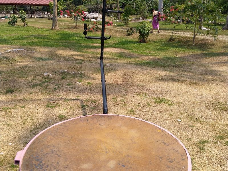 Nach etwa 8km lockeren Fahrens kommen wir zur Lagune No.1 und für 10000 Kip pro Nase dürfen wir auch hinein in den "Park". Hier gibt es alles: Restaurants, Liegehütten, Zipline, eine Höhle, Bäume von denen aus man in das klare blaue Wasser springen kann. Aber uns ist es noch zu früh und es gibt ja noch zwei weitere Lagunen auf dem Weg. Am Wegesrand sitzen 2 Frauen am Webstuhl und weben komplizierte Muster. Wir schauen etwas zu. Da muss man konzentriert arbeiten.