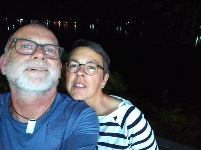 Wir essen in einem Restaurant was benachteiligten Jugendlichen eine Ausbildung gibt. Haben wir gestern per Zufall gefunden. Ist etwas teurer, aber was solls. Ich probiere die hiesige Spezilität - eine Brawurst. Keine Ahnung was drin ist, aber sie ist richtig lecker. Danach sitzen wir am Mekong und trinken ein Glas Wein. Auf dem Rückweg zum Hotel schlendern wir über den Nachtmarkt - es fehlen noch Mitbringsel.