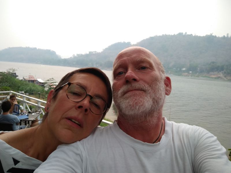 Eigentlich hatten wir uns ein Restaurant am Nam Khan für heute ausgesucht, aber angesichts der roten Sonne über dem Mekong ändern wir dies. Auf einer Terrasse über dem Fluss bestellen wir uns frittierte Algen aus dem Mekong mit Sesam, nochmals Cashewnut mit Huhn und Laap. Die Algen sind eine Spezialität von hier. Sehr lecker. Wir haben noch genug Geld für eine Flasche Sauvignon-Blanc aus Neuseeland. Der Chef persönlich kommt zu jedem Tisch und schwätzt mit uns. Er erzählt, nachdem wir unsere Misere geschildert haben, daß ihm 60% wegbrechen. Jeder hier muss um sein Überleben kämpfen. Die hängen zu fast 100% vom Tourismus ab und der bricht gerade weg. Das tut uns echt unheimlich leid für die Menschen hier.