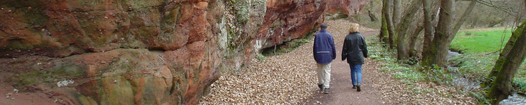 Die Kolles-Leukener-Schweiz (ich hoffe Trudel hat da nicht gelogen) liegt südlich von Saarburg. Wir besuchen Trudel und haben das Glück, dass es nicht regnet. Also schnell nach Kolles-Leuken gefahren und die Wanderschuhe an. Die Wege sind weniger vermatscht als wir denken. Gleich am Anfang geht es wie in einer Art Schlucht eng in ein Tal hinein. Sandsteinfelsen ragen links und rechts des Weges hoch. Im Sommer ist es bestimmt noch schöner als jetzt Anfang April.