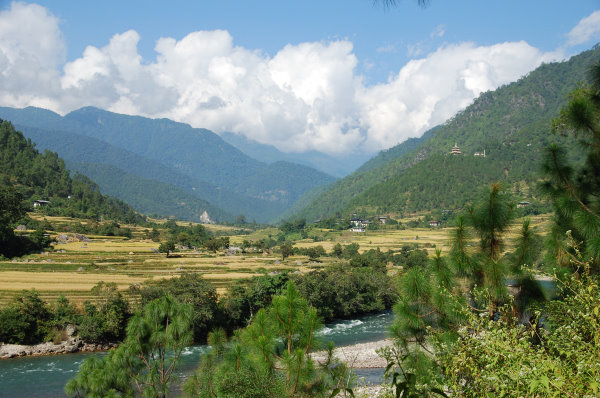 Da wir gerade ein wenig Einblick in das bhutanische Familienleben haben, ein Statement zum viel erwähnten Bruttonationalglück: Bhutan hat in den letzten Jahren seine Lebensbedingungen stark verbessern können, die Lebenserwartung stieg auf 66 Jahre, was verglichen mit Indien sicher viel ist. Die Menschen hier sind freundlich, wirken zufrieden mit ihrem Leben, müssen nicht hungern oder auf der Strasse leben (zumindest dort wo wir unterwegs waren). Wir haben aber auch arme Menschen gesehen, bei denen das Glück noch nicht angekommen zu sein scheint. Z.B. einen kleinen Jungen, der bei einer Wanderung ein Stück mit uns lief. Er war Waise, lebte bei seinen Großeltern. Er trug (zwei verschiedene) Handschuhe, was in der Gegend nach Sonnenuntergang auch nötig war, aber Badelatschen ohne Socken, weil er dafür kein Geld hatte.
