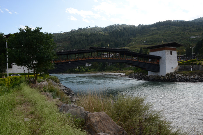 Dann schauen wir uns den Dzong von Punakha an. Er ist nicht ganz so groß wie der in Thimphu aber nicht weniger beeindruckend. Weil es noch nicht so spät ist machen wir auf der Rückfahrt noch einen Abstecher zur längsten (Fußgänger- und Vieh-) Hängebrücke Bhutans (220m), die wir natürlich hin und zurück laufen müßen.