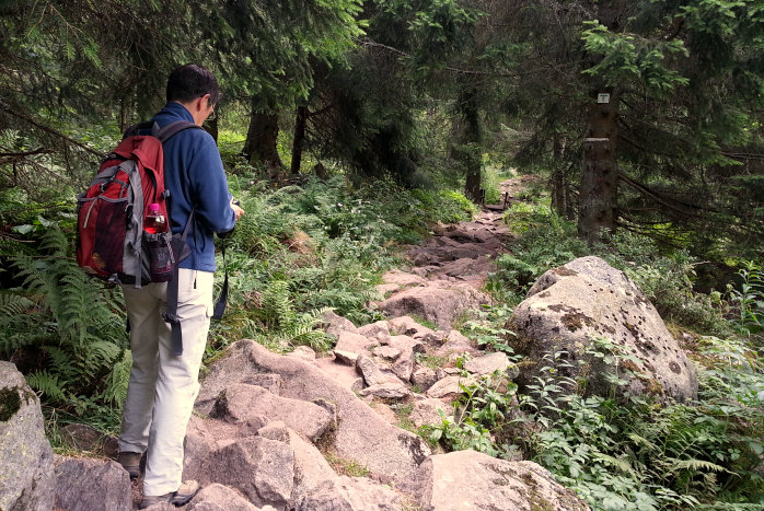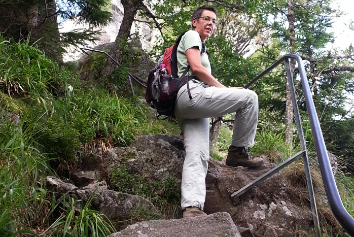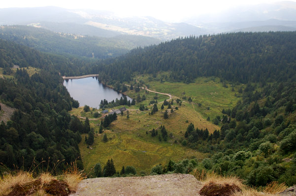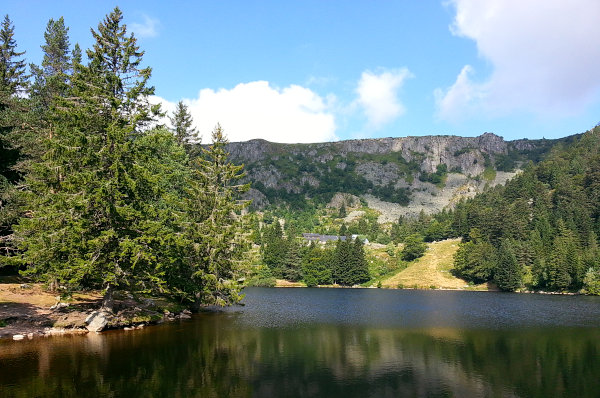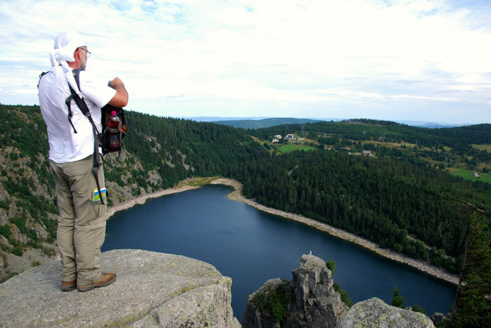 Wir fahren wieder Richtung Col de la Schlucht, biegen aber vorher ab zur Ferme Auberge Seestädtle. Die Wanderung führt uns über den Lac Vert durch wunderschönen Wald zum Lac de Truites. Dann geht es steil hoch auf die Felswand, die wir von unten schon registriert hatten. Über die Hochebene und den Tanet (1292m) laufen wir weiter bei wenig Sonne und manchmal kühlem Wind. Komisch nur, dass wir fast 5 Stunden brauchen wo doch 3:35 bei der Wanderung angegeben sind. Sind wir so langsam geworden? Oder haben wir doch einen Umweg genommen? Egal - es war ein wunderschöner Weg.