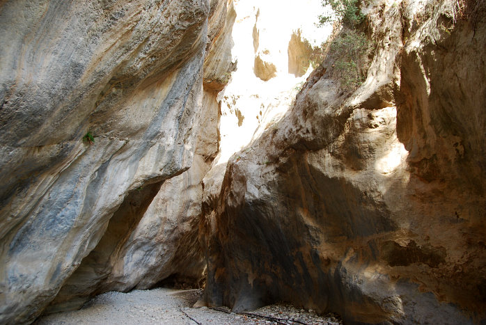 Wir fahren zum Beginn der Sarakinas-Schlucht bei Myrthos (Karte), können aber leider höchstens 10 Minuten hineinlaufen und dann geht es über riesige, aalglatte Felsblöcke, so dass wir wieder rumdrehen. Aus welchen Gründen auch immer geht meine Kamera zu diesem Zeitpunkt kaputt und funktioniert ab dann auch nicht mehr. Schluchz....