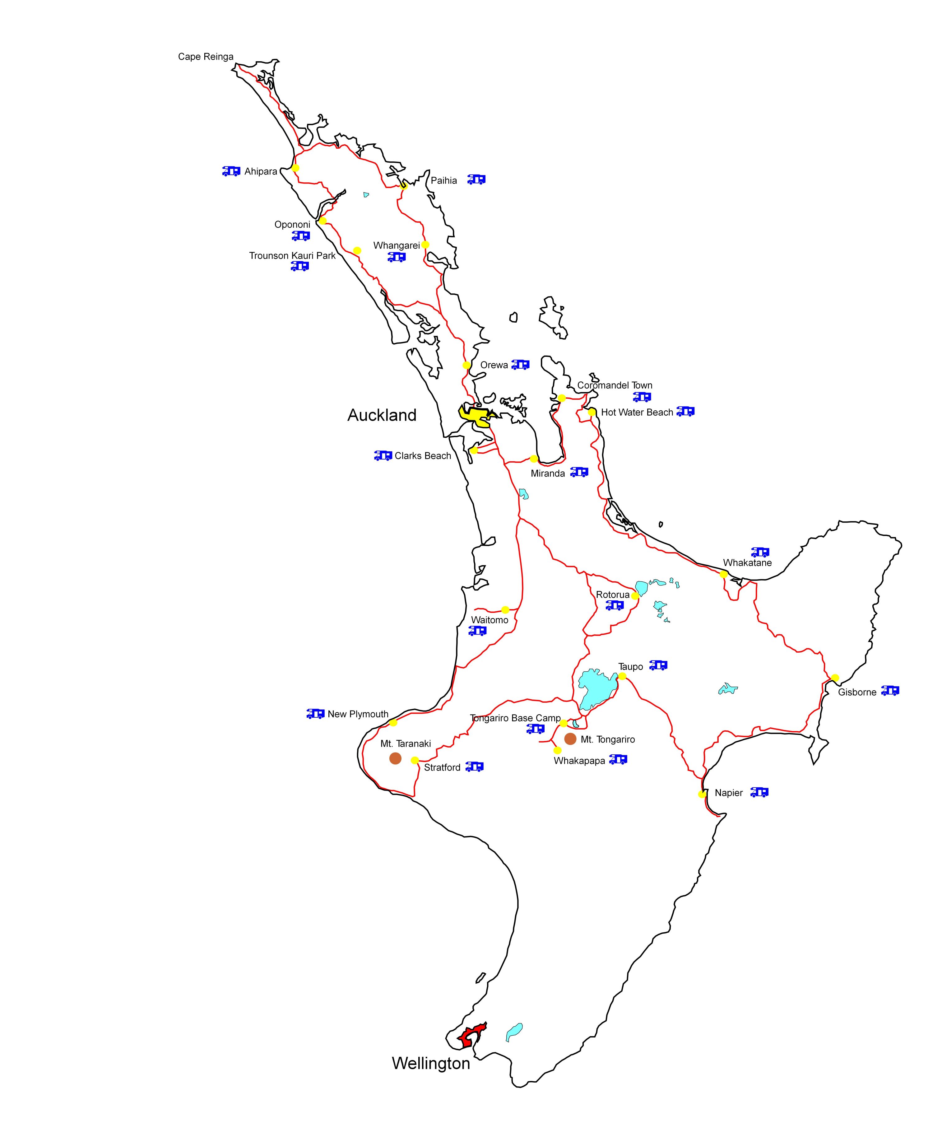 Dann fahren wir über Waitomo, Te Kuiti, Piopio nach Mokau. Die Landschaft besteht ausschliesslich aus sanften Hügeln und Weidewirtschaft. Waren es früher die Schafe, die man nun kaum noch sieht, sind es jetzt Kühe und Ziegen. Kurz vor Awakino, in gleichnamiger Schlucht, stoppt der Verkehr. Nachts ist ein Laster auf schwieriger Strecke verunglückt und der wird jetzt, nach etwa 10 Std. immer noch geborgen. Hier stehen wir etwa 1 Stunde rum. Aber die Kiwis sind unterhaltsame Leute. Wir kommen mit einem 90jährigen Mann ins Gespräch. Er fragt wo wir herkommen und erzählt uns dann, dass seine Urgroßmutter aus Dresden kommt. Auch er erzählt uns, dass es viel zu trocken sei. Das haben wir an den Weiden bereits erkennen können. Endlich geht es weiter und wir können in Mokau unseren Nachmittagskaffee einnehmen. Ich gönne mir ein Sandwich und Elke einen Kuchen. Der Kuchen ist gut.