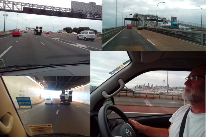 Wieder ein bewölkter, nicht ganz so kalter Morgen. Ein kleines Stück fahren wir Richtung Westen bis wir auf den SH1 treffen. Dann geht es relativ flüssig durch Auckland, ich hatte es schlimmer erwartet. Wir sehen sogar den Skytower und die Innenstadt. Am beeindruckendsten aber ist die Harbour-Bridge. Zum einen natürlich weil sie in einem Bogen aufwärts über den Waitemata Harbour führt und man sehr viel sieht von dort aus. Zum anderen aber wegen des mobilen "das Mittelleitplanke-, je nach Bedarf wie der Verkehr stadtein- oder auswärts ist, Verschiebefahrzeug". Schwer vorstellbar wenn man es nicht gesehen hat - uns kam dieses Gefährt gerade entgegen. Es fährt über die Leitplanke drüber und diese wird dann hinten um eine Spur versetzt wieder ausgespukt. Genial!