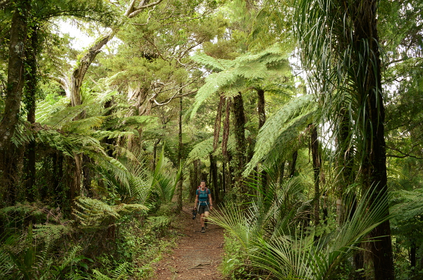 Nahe Warkworth, im Dome Valley machen wir dann eine 2 Stunden Wanderung. Es ist zwar anstrengend, weil es teils sehr steil und mit vielen Treppen versehen ist. Aber wieder geht es durch ursprünglichen Wald mit vielen Farnen. Einfach toll. Am Lookout haben wir Sicht bis nach Auckland und Elke entdeckt sogar den Skytower. Noch weiter geht es zum Dome Summit. Machen wir natürlich auch noch. Ab hier ist der Weg nicht mehr so gut hergerichtet. Es geht über Stock und Stein und ist hie und da muddy. Für all die Mühe gibt es am Ende am Parkplatz ein Café. Kaffee, Kuchen und Eggsandwich... hmmm. Stolz präsentiert sich ein Hahn der sogar einen Adelstitel trägt. Hier treffen wir auch einen Kiwi der beide Inseln komplett durchwandert. Er macht das wochenweise und am Ende werden es 2800km (Te Araroha-Walkway) werden. Respekt. Er trägt sein ganzes Gepäck einschliesslich Zelt und Schlafsack. In Warkworth kaufe ich für 2$ bei der Heilsarmee einen Trinkbecher für Susi. Diese Geschäfte gibt es fast überall - und sie sind gut besucht!