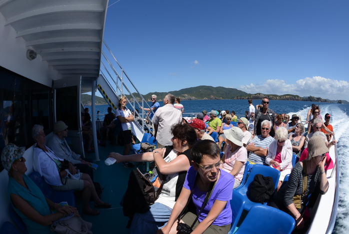 Weiter geht es nach Paihia, quasi dem Tourizentrum in der Bay of Island. Südseestimmung pur. Das Wetter könnte besser nicht sein. Blauer Himmel mit Schäfchenwolken. Wir buchen die 4 Stundentour mit dem Boot. Susi wollte, glaub ich, lieber 20 Minuten mit dem Hubi fliegen. Elke und ich lieber die 4 Stundentour. Kompromisse muss man machen. Das Boot ist sehr voll, aber bei dem Wetter kein Wunder. Dafür sehen wir türkisfarbenes Wasser, tolle Inseln, Landschaften, Bottlenosedolfins..... Vor allem die großen, pfeilschnellen Delfine sind wirklich phantastisch, man könnte ihnen ewig zusehen. Ich glaube auch Susi hat`s gefallen. Auf Urupukapuka, einer kleinen Insel, haben wir eine Stunde Aufenthalt. Während Elke zum Lookout geht, schwimmen Susi und ich im glasklaren Meer. Einfach toll. Zurück in Paihia kaufen wir noch die Reste für ein gescheites Abendessen. Nach einer Dusche verspeisen wir den von Susi mitgebrachten Sekt, Käse aus der Manufactur in Puhoi, Salat und Kartoffelchips am Campingplatz auf einer Bank mit Blick auf die Haruru Falls. Susi wird morgen zurückfliegen. Leider. Mit ihr kann man es aushalten.