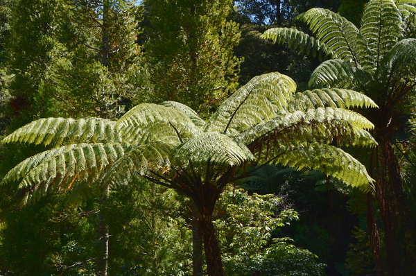 Weiter geht die Fahrt durch den unglaublich schönen Wald und dann direkt in den nächsten hinein, den Trounson Kauri Park. Hier installieren wir uns erstmal im gleichnamigen Campingplatz (wunderschön gelegen, allerdings ist gerade eine Highschool hier...) und fahren dann zu einem kurzen Wanderweg. Eigentlich soll er nur etwa 1 Stunde dauern. Da wir aber alleine hier unterwegs sind und unendlich viele Fotos machen brauchen wir etwas länger. Es ist traumhaft schön und wir zählen die vielen riesigen Kauris schon gar nicht mehr. Leider gibt es eine unbekannte Krankheit die die Bäume bedroht. Es sind sowieso nicht mehr viele übrig. Die Krankheit überträgt sich wohl durch Erde und daher darf man nicht mehr wie früher an die Bäume heran. Ausserdem gibt es Desinfektionsstellen wo man sich die Schuhe sauber machen muß. Die Vogelstimmen klingen immer noch fremd und bringen uns jedesmal wieder zum schmunzeln.