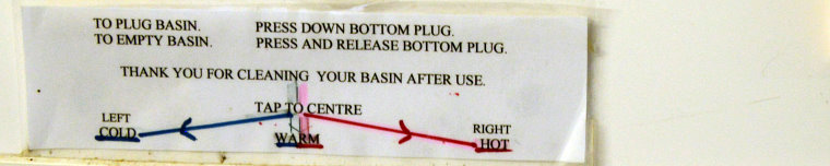 Wo wir gerade bei Waschbecken sind: Offensichtlich ist es verboten in Waschräumen auf Campingplätzen Haken anzubringen. Wir hatten bisher noch an keinem Waschbecken einen Haken. -