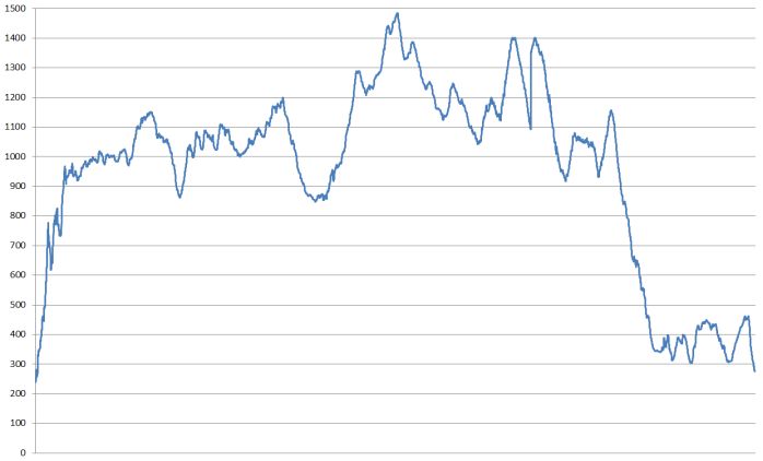 Etappe Länge Steigung Gefälle ----------------------------------- 1 14km 1153m 465m Höheprofil 2 23km 720m 764m Höheprofil 3 15km 633m 463m Höheprofil 4 20km 667m 718m Höheprofil 5 19km 817m 672m Höheprofil 6 16km 853m 883m Höheprofil 7 29km 951m 1962m Höheprofil 8 20km 697m 768m Höheprofil ----------------------------------- Gesamt 159km 6757m 6720m Höheprofil