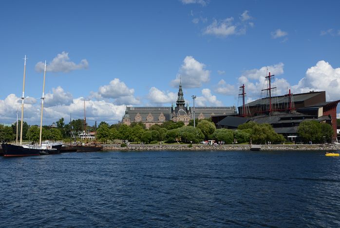 Es ist Montag und das Wetter ist spitze. Die Djurgarden-Insel ist am Wochenende voll und deswegen haben wir bis heute abgewartet. Hier kann man auch endlich mal wieder etwas flotter laufen. Von Gamla Stan nehmen wir die Fähre, die wir dank 7-Tageticket kostenlos nutzen können. Morgens früh ist noch nicht viel los. Wir steigen am noch verwaisten Tivoli aus und beginnen die Tour rund um die Insel. Mein lieber Schwan, hier stehen tolle Häuser bzw. Villen. Bei der Hälfte der Inselumrundung genehmigen wir uns 2 Kaffee und ein mit Crème gefülltes Teilchen. Dabei schreiben wir Postkarten und werfen sie auch dort ein. Dann geht es auf der nördlichen Route zurück. Gegen 13 Uhr kommen wir am Nordiska Museet an. Hier genehmigen wir uns an der Djurgardenbron ein extrem leckeres Shrimpsbrot. Dazu Limo und Wasser.