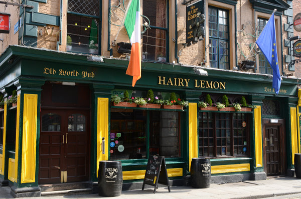 Es ist so schön geworden, dass wir uns einfach durch die Strassen treiben lassen. Ziel ist die St. Patrick’s Cathedral. Dort stehen schon einige Busse mit Spaniern rum und ob des schönen Wetters lassen wir das mit dem Anschauen des Innenraumes. Stattdessen laufen wir im Zickzack zum River Liffey. Dort wollen wir uns den ersten Kaffee des Tages gönnen. Weil es noch etwas windig ist setzen wir uns hinein. Mittlerweile machen die Iren richtig guten Kaffee und er ist offensichtlich das Hipgetränk.