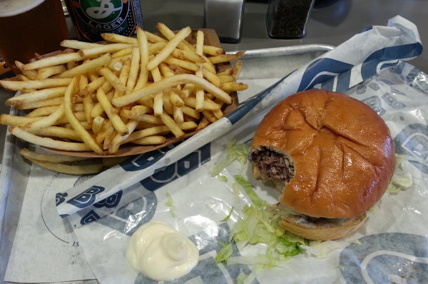 Nachdem Elke gestern keinen Burger gekriegt hat holen wir das heute nach. Im "Bunsen" soll es unserem Reiseführer nach Gute geben. Im Temple Bar-Viertel liegt das "Bunsen". Also machen wir uns auf. So langsam gehen uns die Alternativwege aus, aber wir versuchen immer wieder etwas neues zu finden. Diesmal gehen wir in einem Bogen zum Liffey und dann an ihm bis zum Temple Bar-Viertel. Das "Bunsen" erweist sich als laut und die Speisekarte passt auf die Rückseite einer Visitenkarte. Das Bier ist sauteuer und schmeckt – hmmmm – komisch. Die Burger bekommen wir eingewickelt in Wachspapier, die Pommes in einer Pappschachtel, die Mayo macht man sich auf die Papierunterlage die auf dem Alutablett liegt. Bestecke gibts auch keine. Irgendwie wie bei McDonalds, vielleicht etwas vornehmer. Geschmeckt hats – so isses nicht, aber man sollte nicht alles glauben was im Reiseführer steht.