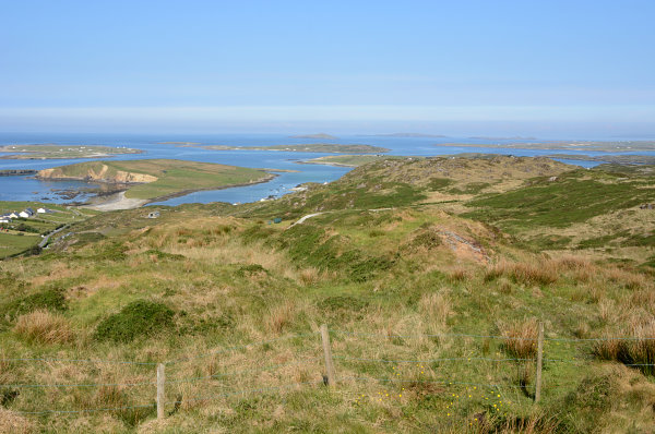 Nach dem Frühstück fahren wir gen Clifden auf die "Sky Road". Die liegt auf einer Halbinsel in Fingerform. Auf der einen Seite des Fingers fährt man hin und auf der anderen Seite zurück. Sky Road, weil man auf die Buchten und Landschaft von "oben" herabschauen kann.