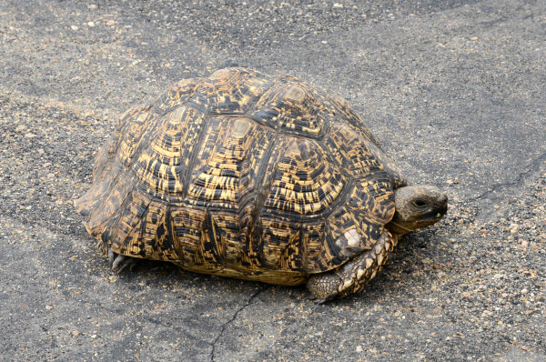 Die Idee heute ist ein wenig in den Norden des Park zu fahren. Maximale Geschwindigkeit ist 50km/h. Das erweist sich schnell als kein Problem, weil wir selbst nach Tieren Ausschau halten müßen und so recht langsam unterwegs sind. Direkt hinter dem Gate kreuzt eine Schildkröte die Strasse. Oha, hier muss man aufpassen.