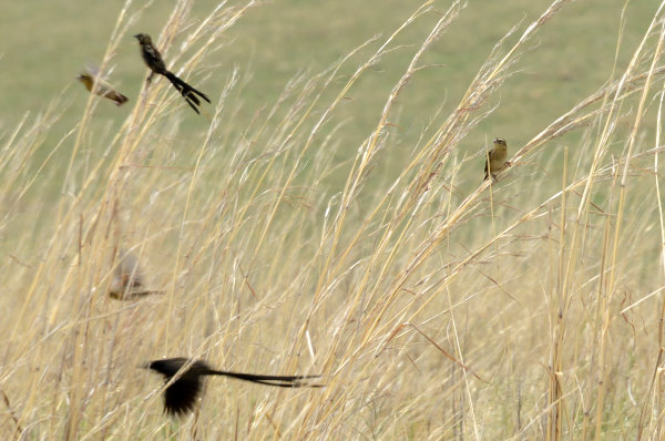 Was es hier auch viel gibt sind Vögel. Allein in der Anlage sieht man Webervögel, Schwalben in Scharen, Ibisse, Kraniche, Stare und noch viele mehr. Die scheueren Vögel, wie den Southern Red Bishop, sehen wir auf der Wanderung jetzt mehrfach. Sehr schöne kleine Vögel in hauptsächlich roter Farbe. Eine einsame Antilope haben wir auch noch gesichtet. Die Berge zeigen sich heute auch etwas scheu. Sie sind nur selten zu sehen – am Stück schon mal gar nicht. Zum Ende der kleinen Wanderung hin packen wir vorsichtshalber die Kameras weg. Gedonnert hat es nun schon oft, aber jetzt tröpfelt es. Wir kommen gerade noch trocken im Zimmer an.