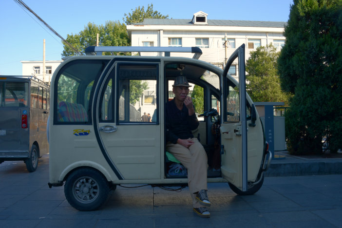 Die Kontrollen in Frankfurt nerven schon. Zu dem Zeitpunkt kennen wir die Kontrollen in China noch nicht! Wir landen nach 9 Stunden Flugzeit pünktlich in Peking um 11:20 Ortszeit (+6Std. Zeitverschiebung). Jetzt kommen die Einreiseformalitäten. Zuerst füllen wir das obligatorische Einreiseformular aus. Das kann man bequem beim Anstehen erledigen. Nach dem Einscannen der Fingerabdrücke (alle 10!) und einem Körpertemperaturcheck im Vorbeigehen stehen wir nun in einer scheinbar endlosen Schlange für den Passportcheck. Die Kontrollen in Frankfurt erscheinen uns nun geradezu lächerlich. Der Zoll will nix von uns und draussen wartet bereits Kun, unser Reiseleiter, mit ein paar Anderen aus unserer 18-köpfigen Gruppe. Wir ziehen am Automaten der Acriculture-Bank 2500 Yuan. Das sind etwa 300€. Offiziell heissen die Yuan Renminbi - verwendet aber keiner.