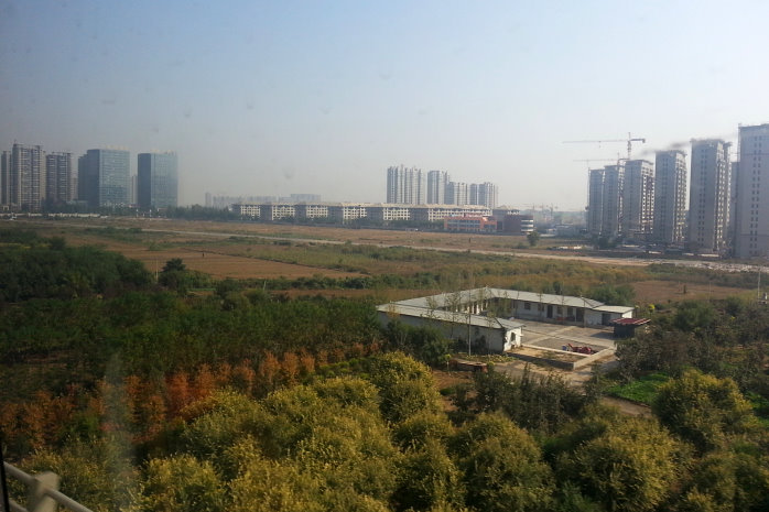 In Zhengzhou halten wir auch an. In der Provinzhauptstadt mit über 10 Mio. Einwohnern werden die meisten iphones hergestellt. In der Umgebung wird ausserdem extrem viel Stahl produziert. Der Strom dazu wird aus Kohle gewonnen. Deshalb hat die Provinz ein Smogproblem. Kun erzählt, dass die Luft in Peking so sauber geworden ist liegt an den abgeschalteten alten Kohlekraftwerken. Ausserdem werden überall Bäume gepflanzt und Elektromobilität gefördert. Man sieht sehr viele Elektroroller und -fahrräder und Oberleitungsbusse. Die haben hier die selben Probleme wie wir – nur in einem viel größeren Ausmaß.