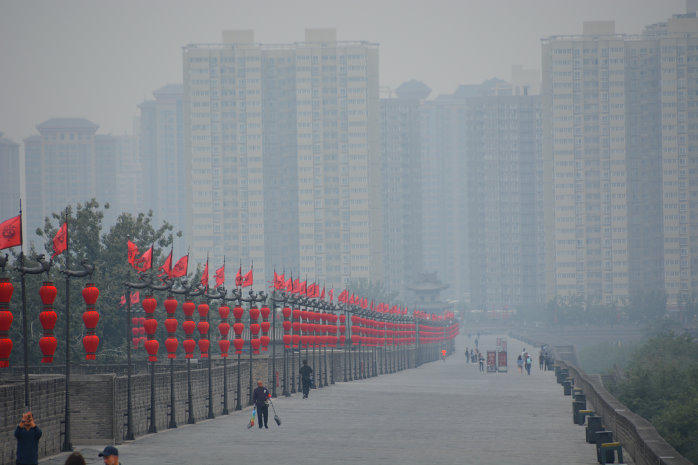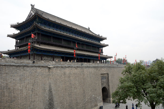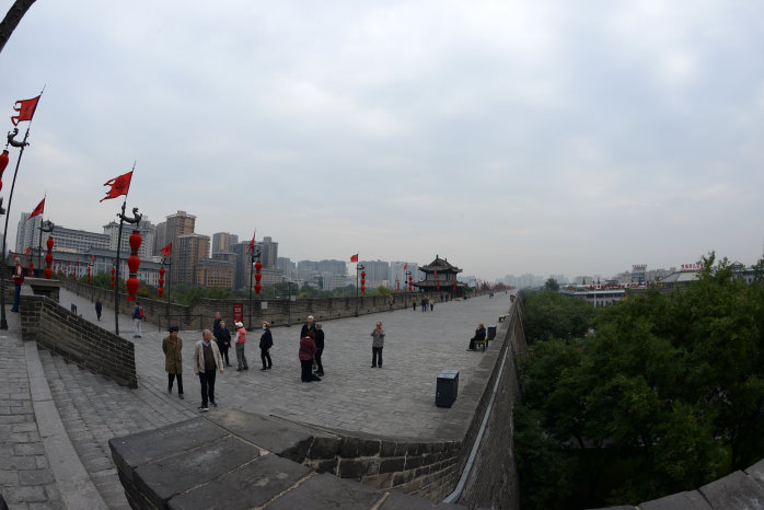 Wir bleiben heute zuerst in der Stadt und laufen vom Hotel aus durch einen Park Richtung Stadtmauer. Im Park sind viele Chinesen die sich der körperlichen Ertüchtigung hingeben. Man hat das ja schon im Fernsehen gesehen, aber so live ist das nochmal was anderes. Frauen tanzen zu Musik oder üben sich an verschiedenen Geräten die hier einfach so rumstehen. Andere spielen Tischtennis mit ihren Männern. Die wiederum üben sich in Klimmzügen oder an einem Diabolo mit Surreffekt. Sehr elegant und bestimmt nicht einfach. Der ganze Park ist in Bewegung.