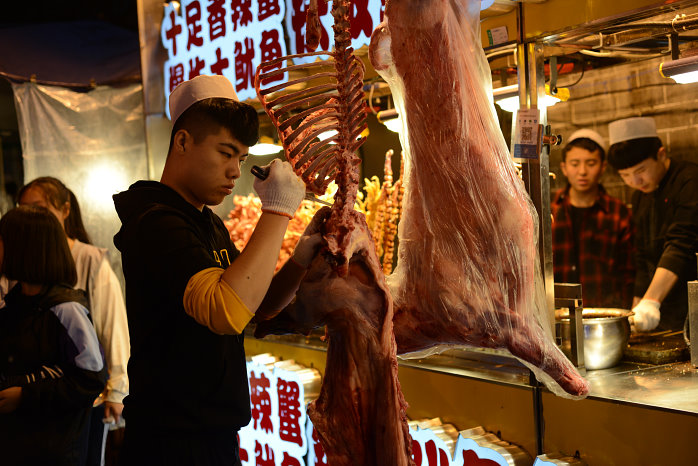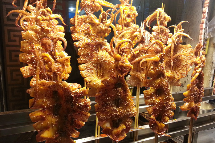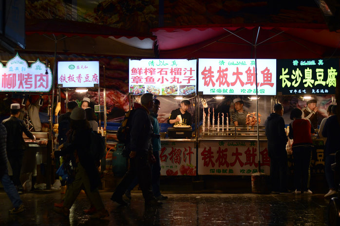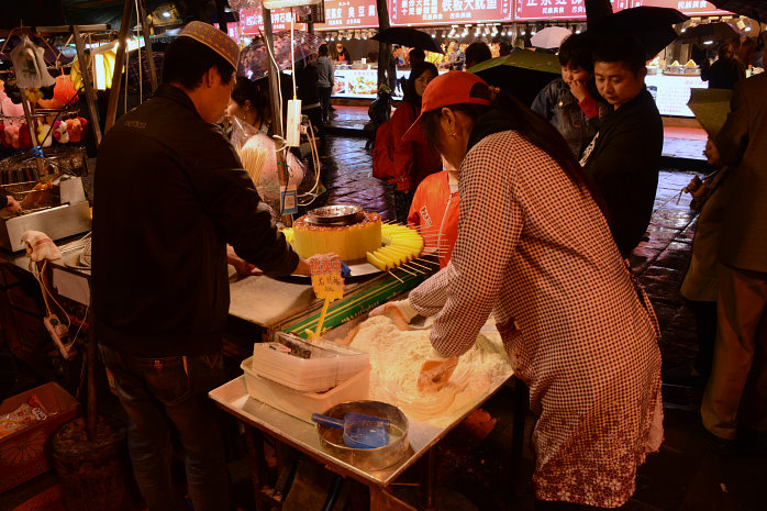 Zum Tagesabschluß besuchen wir noch die "Große Moschee". Dafür müssen wir durch die "Drosselgass" von Xi’An. Ähnlich gestern abend – nur mit fast ausschliesslich Touris. Nach dem Besuch der Moschee bekommen wir noch etwas Zeit durch die Gassen zu schlendern und die eine oder andere Schweinerei zu probieren.