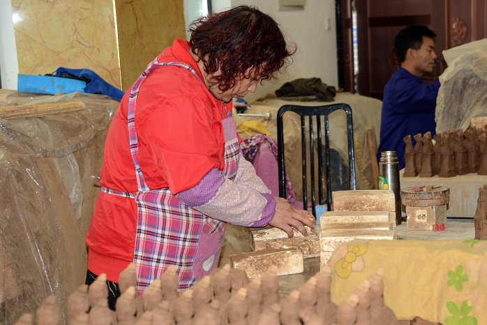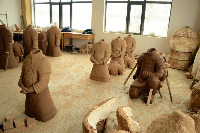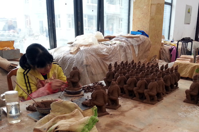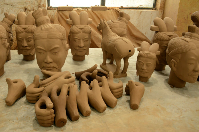 Danach steigen wir in den Bus und fahren Richtung Terrakotta-Armee. Allerdings müssen wir zuerst eine Fabrik besuchen in der die Nachbauten der verschiedenen Figuren hergestellt werden. Bei einer kurzen Führung erfahren wir dazu einiges.