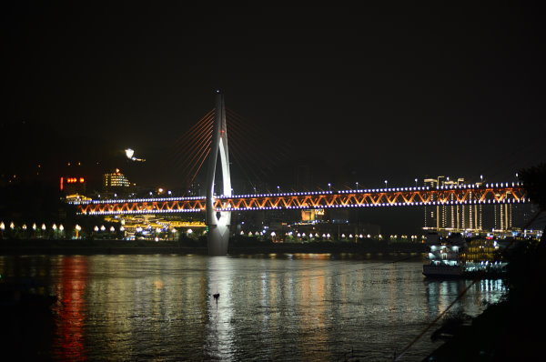 Um 5 treffen wir uns zum Abendessen. Diesmal gibt es etwas gebackenen Fisch, ein Gericht mit verschiedenen Fischsorten und verschiedenen Pilzen, jede Menge Gemüse und diesmal keine Suppe. Mitllerweile schaffen wir fast alles ratzeputz zu vertilgen. Ist aber auch alles richtig lecker. Nach dem Essen fahren wir eingepfercht in einen Mini-Linienbus zum Hafen. Oha. Hier ist vielleicht was los. Congqing hat 32 Mio.Einwohner und die sind scheinbar alle hier – plus Touris, aber die fallen kaum ins Gewicht.
