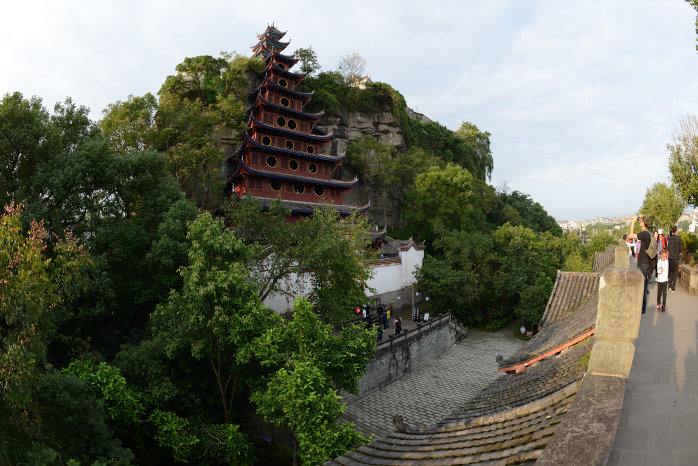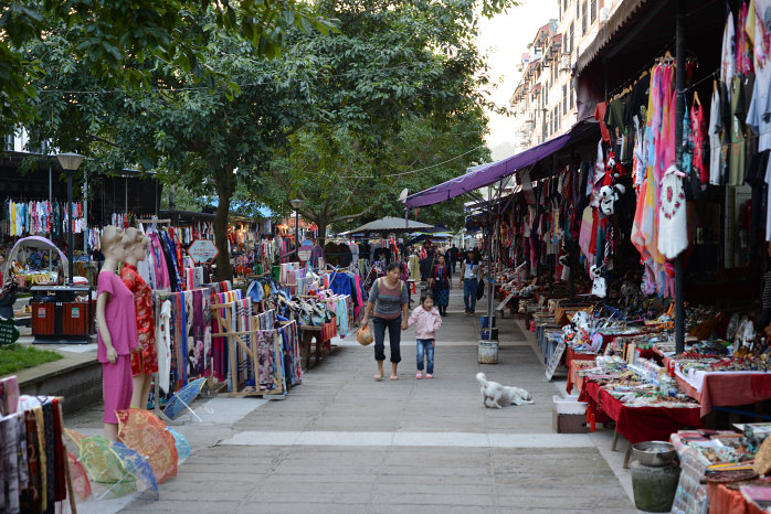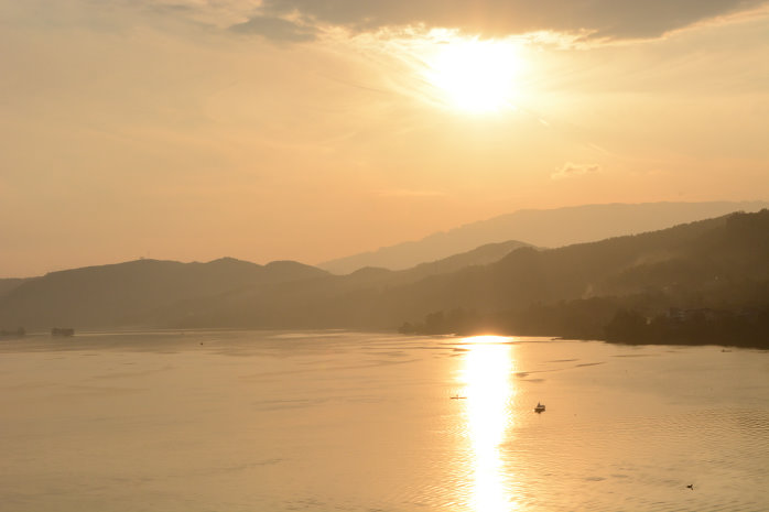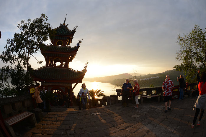 Die Pagode hat 12 Stockwerke mit ziemlich steilen Stufen; eigentlich fast Leitern. Es könnte so schön sein, wenn es nicht so voll wäre und so ätzend langsam die Stufen hoch ginge. Die Sonne geht hinter den Bergen unter und taucht den Yangtze in ein goldenes Licht. Romantisch wie am Mittelrhein. Auf dem Rückweg zum Schiff muss man dann auch noch durch eine Allee von Souvenirständen. Ich weiss warum Schiffsreisen bei mir einen zweifelhaften Ruf haben.