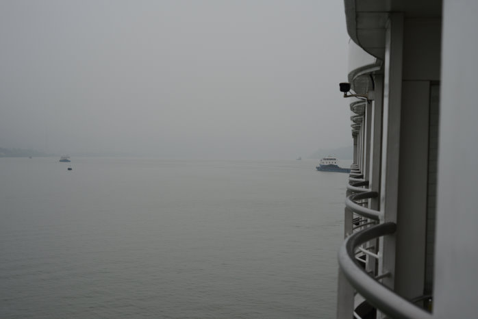 Leichter Lichtschein weckt uns vor dem Wecker. Kurz drauf ertönt die erste Lautsprecheransage des Tages. Zu allen wichtigen Ereignissen, Ausflügen und Programmpunkten kommt eine zweisprachige Ansage. Damit die auch keiner verpasst sogar 2 mal hintereinander. Diese Ansage bezieht sich auf den Ausflug zur Geisterstadt Feng Du, wo wir an geichnamiger Stadt gerade anlegen. Das schenken wir uns heute.