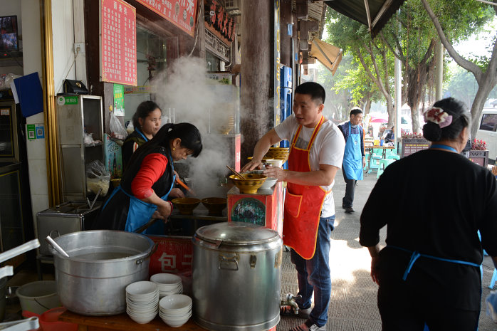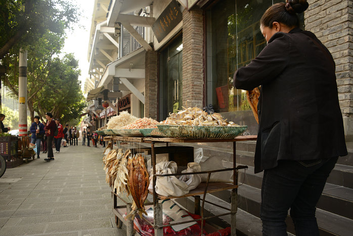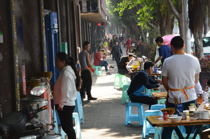 Morgens legen wir an und bekommen etwas Freigang. Diese Möglichkeit alleine rumzurennen lassen wir uns natürlich nicht entgehen. Es gibt so viel zu sehen. Die Pagode und das Museum sind das eine, aber die Menschen im Alltag sind das Allerbeste. Chinesen beim Verkaufen von Trockenfisch oder beim Herstellen von gefüllten Nudeln. Man ist ja schon ein wenig voyeuristisch, es ist halt eine ganz andere Kultur in jeder Hinsicht und deshalb unheimlich interessant.