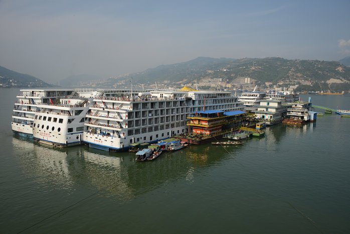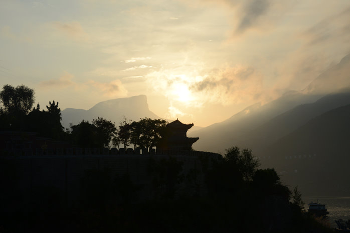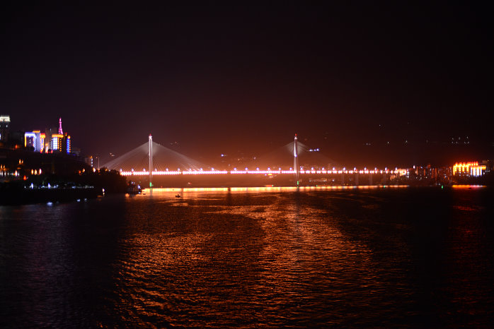 Später gönnen wir uns eine Flasche Rotwein auf dem Aussichtsdeck. Wir fahren an Ba Dong Xian vorbei. Die Ganze Stadt erstrahlt. Die Brücke über den Yangtze und auch die Häuser. Über geschätzt 500m Häuserbreite, 4 reihig, wird eine Lichtshow animiert. Es ist unglaublich. Kun hat erzählt, dass das Yangtze-Staudammkraftwerk 100 Mrd. KWh pro Jahr erzeugt. Das seien aber nur 3,3% des China-Jahres-Verbrauchs. Angesichts dieser Stadtanimationen muss ich, glaub ich, mal ein paar Berechnungen anstellen.