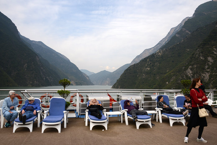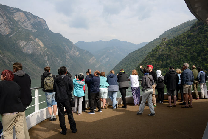 Danach ist immer noch Zeit genug für ein Mittagessen und einen Tee in der Kabine bevor es in die nächste Schlucht geht - die Wu-Schlucht. Sie ist vielleicht nicht so spektakulär wie die Qutang-Schlucht, aber auch sehr schön und deutlich länger.