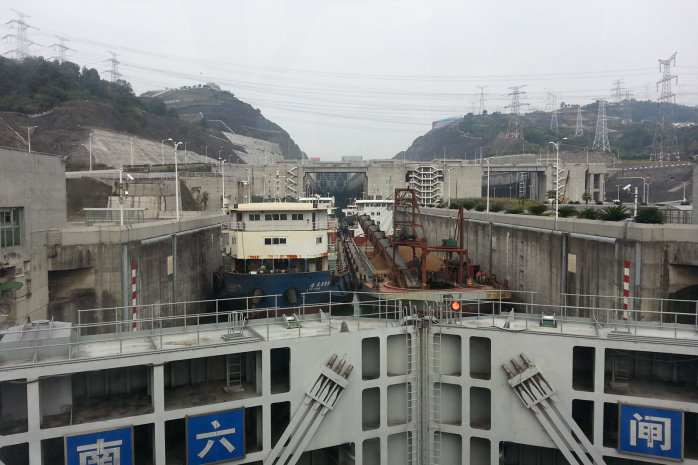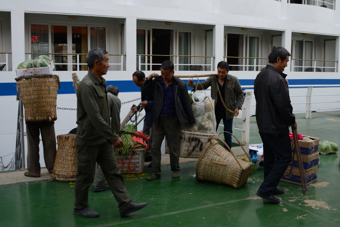 Morgens gegen 2 legen wir am 3-Schluchten-Staudamm an. Um 7 müssen die Koffer vor der Kabinentür stehen und gegen 8 nach einem letzten Frühstück auf dem Schiff gehts los.