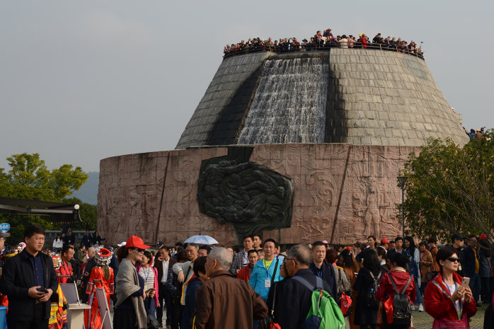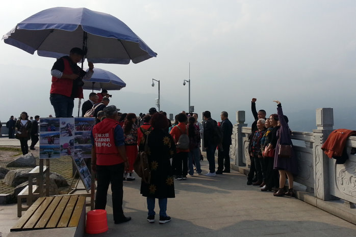 Wir steigen in einen Bus den wir uns mit Chinesen teilen. Die Deutschen links, Chinesen rechts. Kun meinte, das würde die Chinesen sonst verwirren. Gemeinsam fahren wir zum Empfangsgebäude des Schluchten-Informationszentrum. Eins muss man den Chinesen lassen: die kleckern nicht – die klotzen. Jedes neugebaute Gebäude ist ein Statement: Seht her, wir sind die Größten.