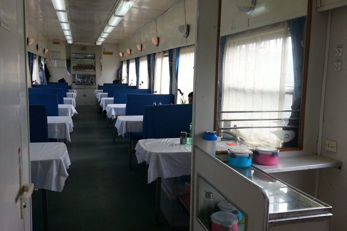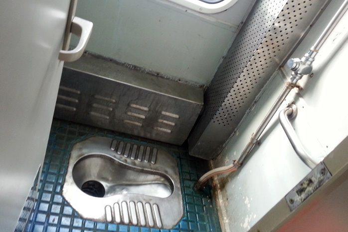 Die Betten an sich sind sehr hart, mehr oder weniger frisch bezogen und in der untersten Ebene kann ich sogar aufrecht sitzen. Schön sind auch die Stehklos mit Blick auf die Gleise. Es gibt auch einige Einheimische die mit uns im Waggon sind. Einige schlafen, aber die meisten sitzen auf dem Bett oder auf Klappsitzen am Fenster, doddeln auf dem Handy und essen. Wir fallen überhaupt nicht auf!