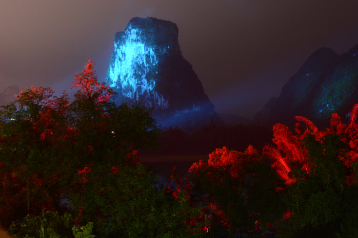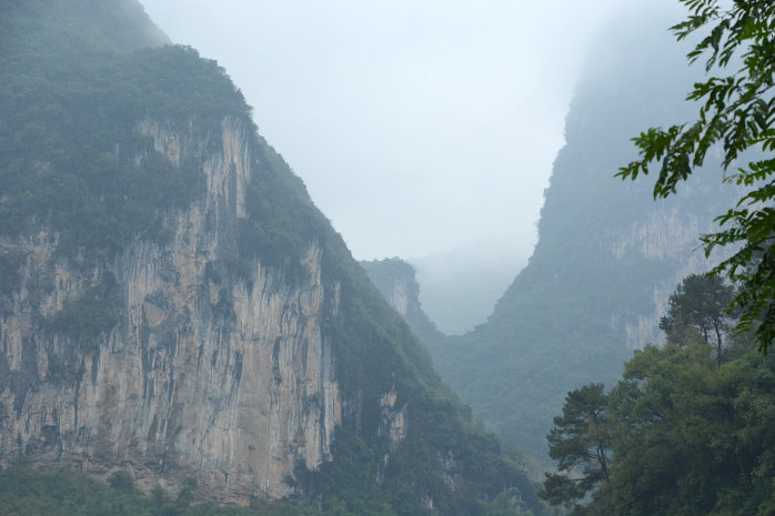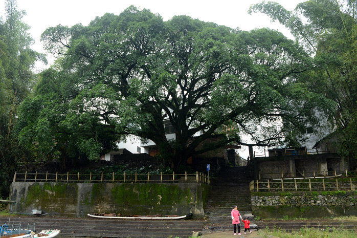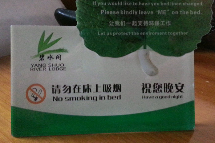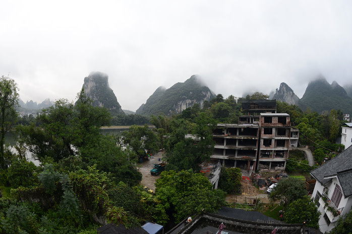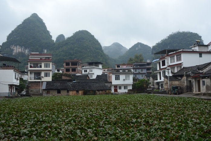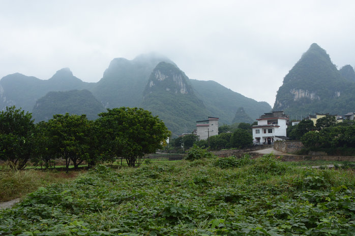 Ich hab eine Karte und GPS auf dem Handy; verlaufen können wir uns also nicht. Am Ende einer Strasse stoßen wir bei einem großen, alten und tollen Baum auf den Li-Fluß. Ein Café ist ausgeschildert aber scheinbar zu. Schade. Immer wieder begegnen wir Frauen mit Kindern auf dem Buckel, die uns freundlich grüßen. Endlich sind mal Langnasen im Dorf.