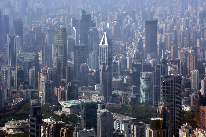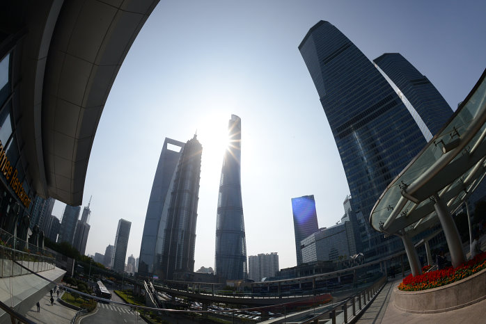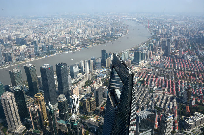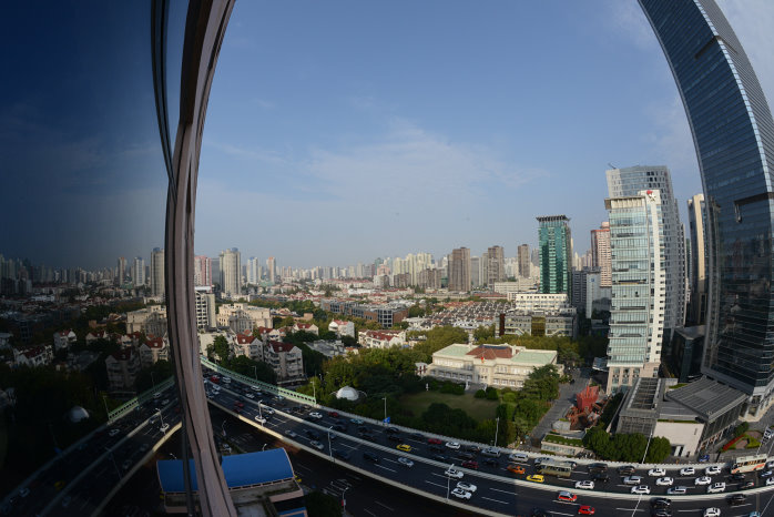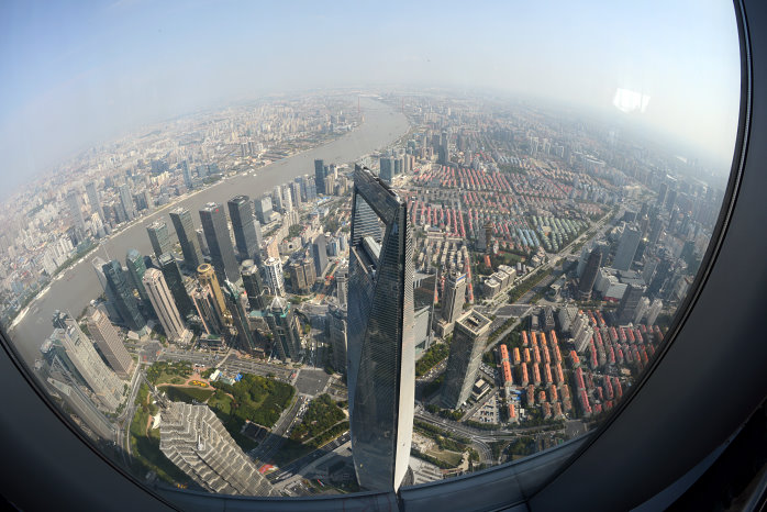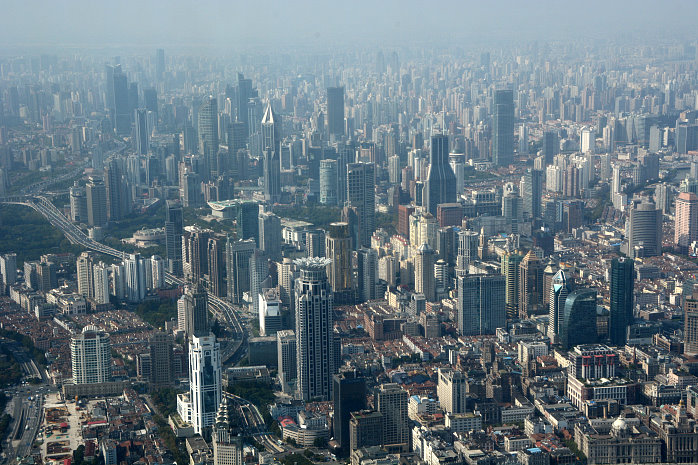 Kun kauft für uns Tagesausweise zu 14Yuan – ein Spottpreis. Auch hier sind wieder Sicherheitskontrollen, wie in allen anderen U-Bahnstationen auch. Nun fahren wir gut instruiert zur Station Century Avenue. Dort laufen wir durch ein Einkaufszentrum, weil das der kürzeste Weg zum Shanghai Tower, dem zweithöchsten Gebäude der Welt, ist. Dort im 119.Stock ist die Aussichtsterrasse, natürlich hinter Glas. Der Aufzug bringt 18 m/s maximal, was ganz schön schnell ist. In 552m Höhe steigen wir aus. Wow, was für eine Aussicht. Etwas diesig, aber beeindruckend. Die Ausdehnung der Shanghaier Innenstadt von 20×25 Kilometern kann man fast erahnen. Knapp eine Stunde lang laufen wir rum und können uns gar nicht satt sehen.