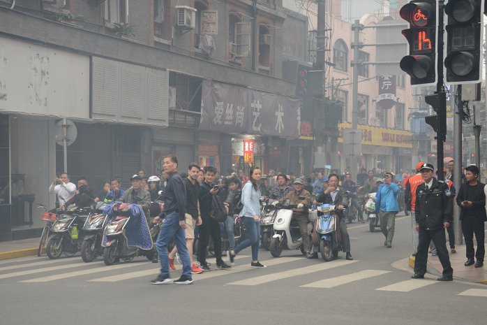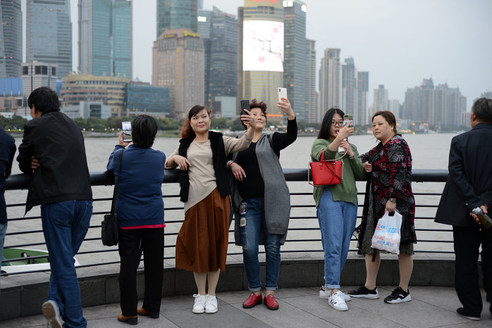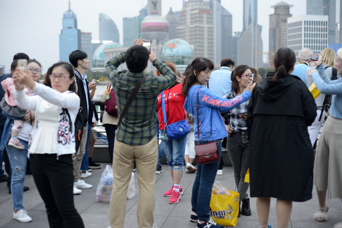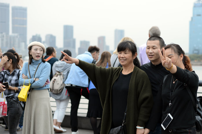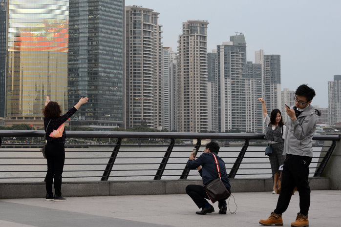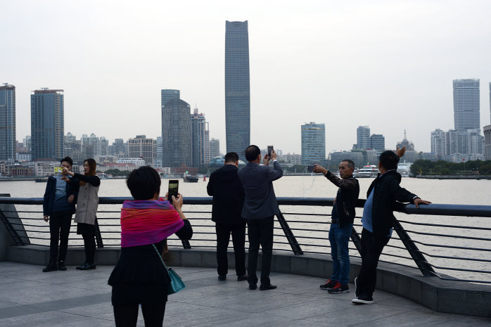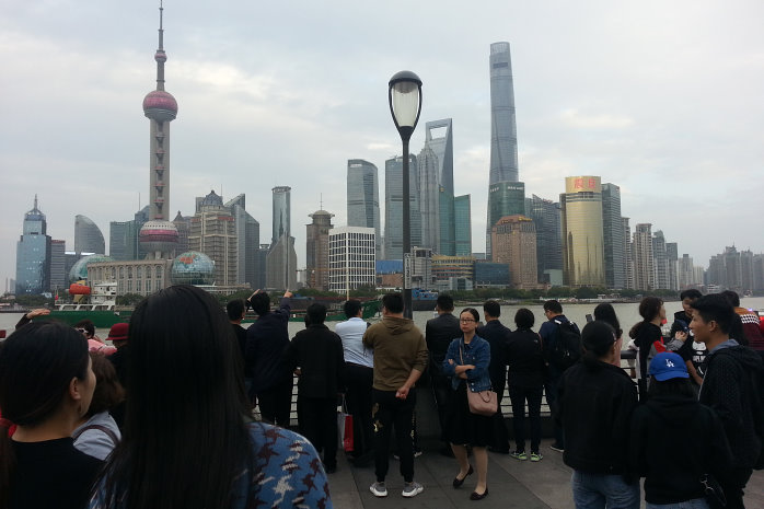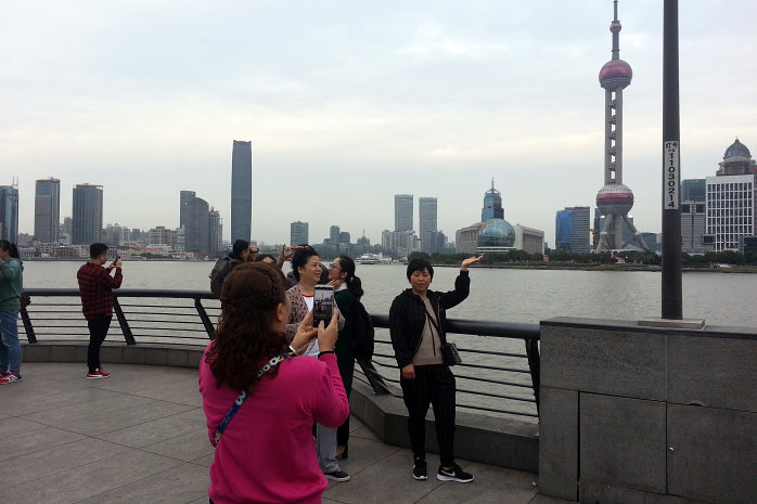 Wir gehen zum Bund, einem beliebten Bummelboulevard von dem man auf die Skyscraper der Banken und Versicherungen schauen kann. Auch auf den Shanghai Tower, der alles überragt. Das Licht ist jetzt schon bescheiden und die Lightshow der Wolkenkratzer noch nicht aktiv. Das ist aber auch ganz nebensächlich, denn erstens hatten wir das schon sehr schön gestern und zweitens sind die Menschen, die sich permanent selbst fotografieren, viel interessanter. Die Chinesen sind wirklich ein Volk von Selbstdarstellern. So krass habe ich das noch nie gesehen.