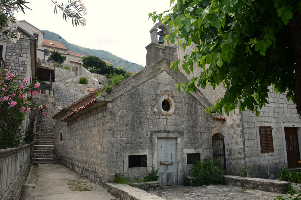Leider kann ich so die Landschaft wenig geniessen. Schade, denn sie ist wirklich toll. Oft hat man einen weiten Blick auf die Bucht von Kotor und die umliegenden Berge. Nach 2 Stunden haben wir die 550 Höhenmeter geschafft und ich habs überlebt. Hat aber nicht viel gefehlt. Wir haben nur 3 Liter zu trinken mit. Weil die Wanderung nur 9 km lang ist dachten wir, dass das reicht. Einen Abstecher zusätzlich sparen wir uns. Die Freude oben zu sein hält nur kurz an. Ein wenig geht es kommod am Hang entlang dann beginnt der Abstieg. Das muss man echt so sagen, denn der Weg führt nur über grosse Wacken. Unsere Knie ächzen und die Beine sind Pudding. Nach weiteren 3 km sind wir völlig fertig wieder unten am Meer. Mit Wandern hat das nix mehr zu tun.