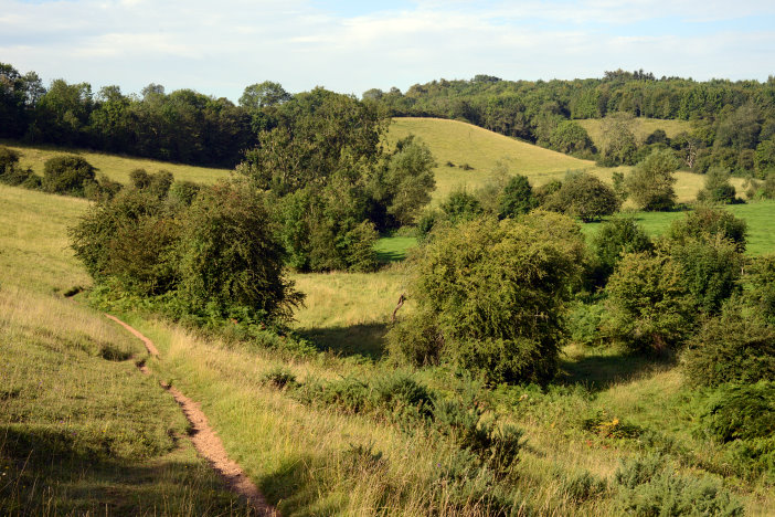 Am Anfang ist es wirklich schön. Es geht an einem Bach, dem Windrush, entlang, der Weg ist schön zu laufen und nur wenige Gatter sind im Weg. Aber je später der Tag und die gelaufenen Kilometer werden, desto schwieriger wird das Gelände. Die Gatter kann man nicht mehr öffnen, man muss über hohe Konstruktionen klettern. Nach 20km kommt so das erste "Warum mache ich das überhaupt – Gefühl" auf. Es ist ja schön, dass das Wetter toll ist, aber fast 30°C!? Wir schwitzen wie die Blöden, der Weg verläuft meist in der Sonne und wir wissen genau dass unser Wasser nicht reichen wird. Es gibt aber auch keine Einkehrmöglichkeit oder die Option aufzufüllen. Der Weg ist oft unpassierbar, weil Brombeerhecken und Brennnesseln alles zugewuchert haben. Das fördert nicht gerade unsere Stimmung.