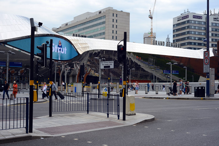 Der 530er Bus kommt fast pünktlich und er ist so gut wie voll. Wir sitzen nicht in einer Reihe sondern leicht versetzt. Der Bus hat wifi und ich versende Grüße über whatsapp - mehr geht nicht. Auf einer Autobahnraststätte wird getankt, aussteigen oder rumlaufen darf man nicht, und einen anderen Stopp gibt es nicht. Nach 90 Minuten sind wir in Birmingham am Busbahnhof. Alle Koffer werden ausgeladen und in Reih und Glied gestellt. Blöderweise ist der Bus nebendran nur 1,5m entfernt und die Aussteigenden und die Kofferschiebenden müssen aneinander vorbei. Blöder gehts nimmer.