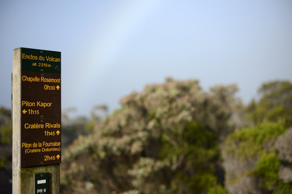 Nach 2,5 Stunden haben wir den Kraterrand Dolomieu auf 2522m erreicht. 6km in 2,5 Stunden – guter Schnitt ;-). Ich finde den Krater jetzt nicht so beeindruckend, aber der Weg dahin ist klasse. Wir sind schon einigermaßen platt, die Beine zittern schon und wir haben vor dem Abstieg reichlich Respekt. Vor allem vor den Geröllhalden. Also machen wir uns zügig an den Abstieg, auch wegen der für Mittags angekündigten Wolken.