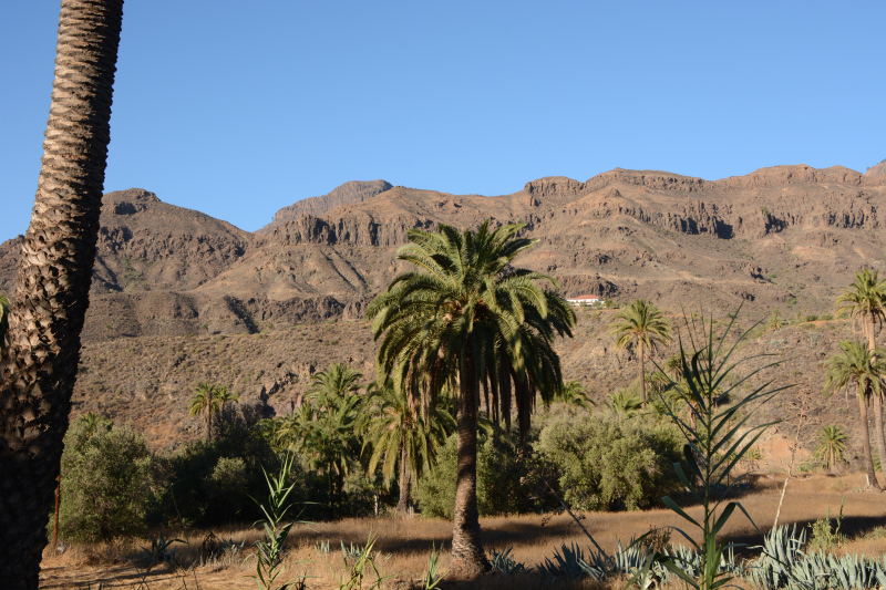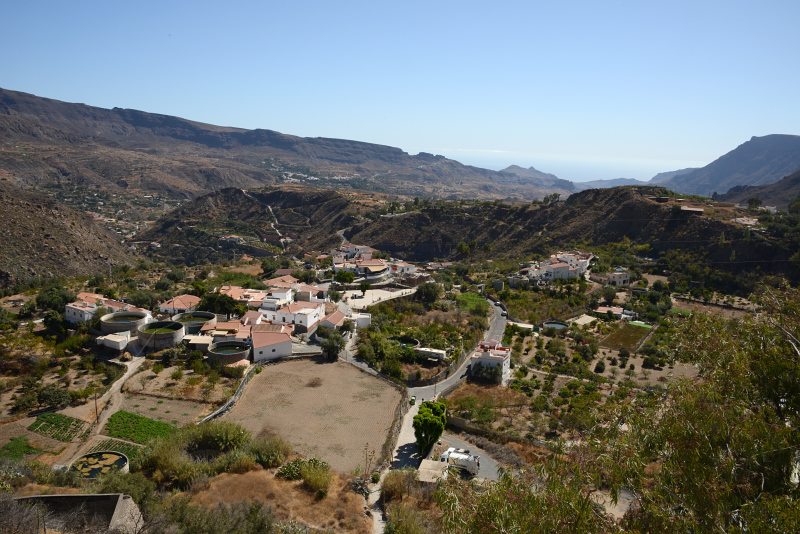 Den Nachmittag verbringen wir auf unserer Terrasse und lesen. Bevor wir zum Abendessen fahren laufen wir ein wenig durch Ingenio de St.Lucia. Also in unserem Dorf. In der örtlichen Kneipe mit Minimarkt, oder umgekehrt, gönnen sich die Einheimischen einen Drink und ratschen. Etwas weiter sehen wir den Einstieg in eine Wanderung die wir mal machen wollen. Sehr praktisch wenn das direkt hier losgehen kann. Das Licht ist gerade toll auf den Bergen kurz vor Sonnenuntergang.
