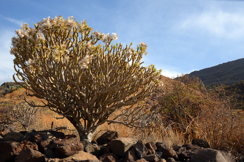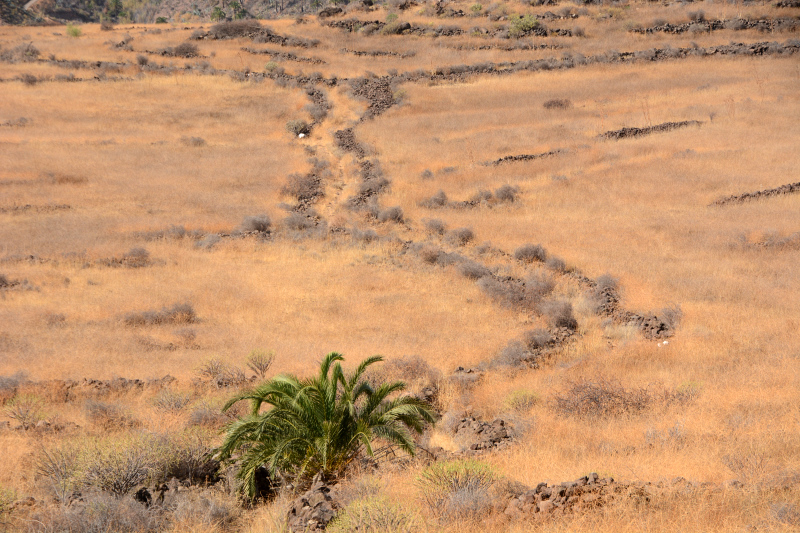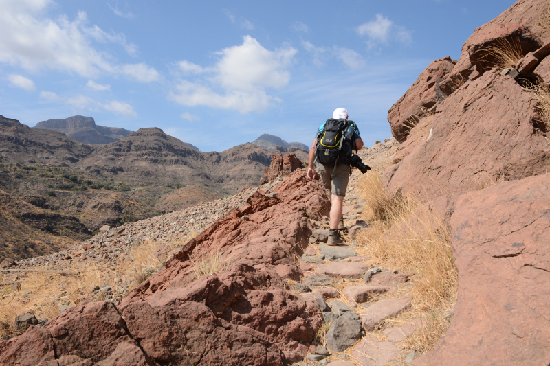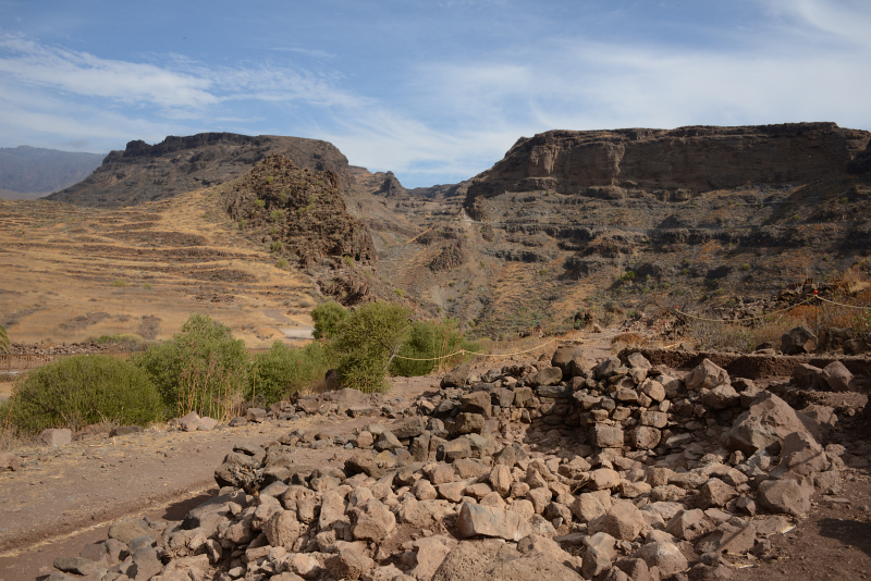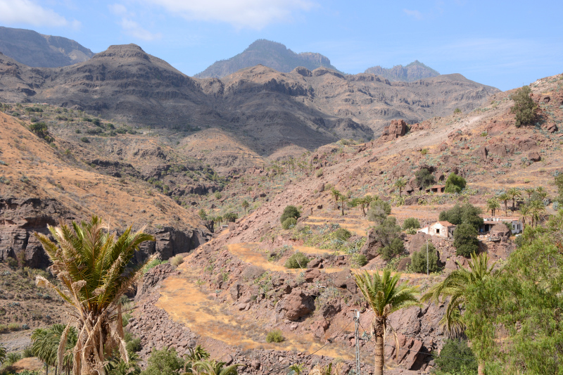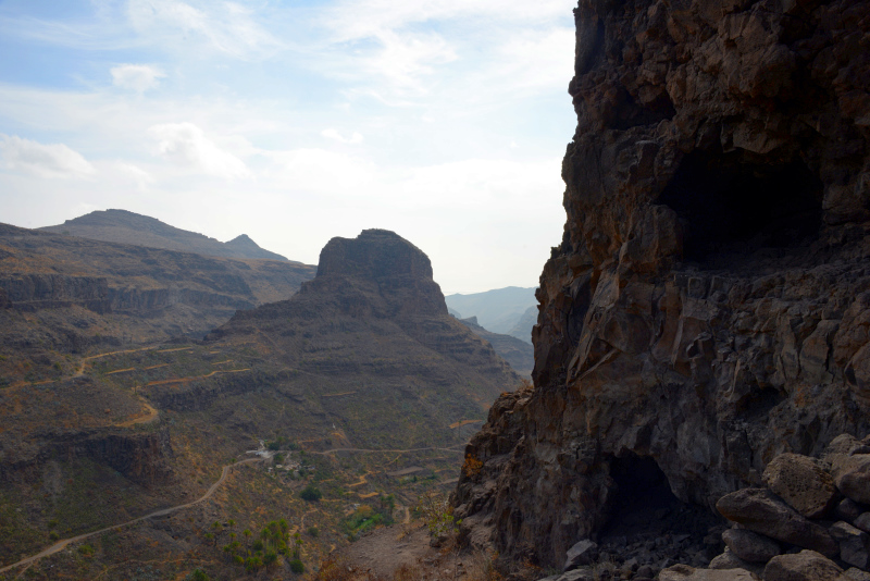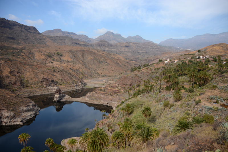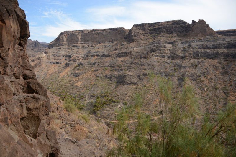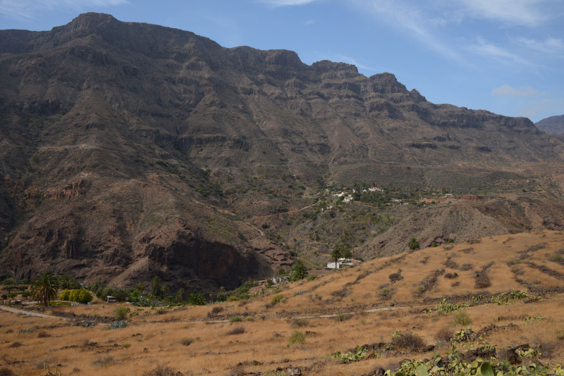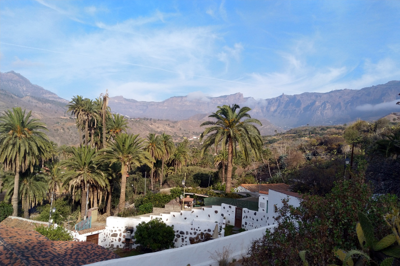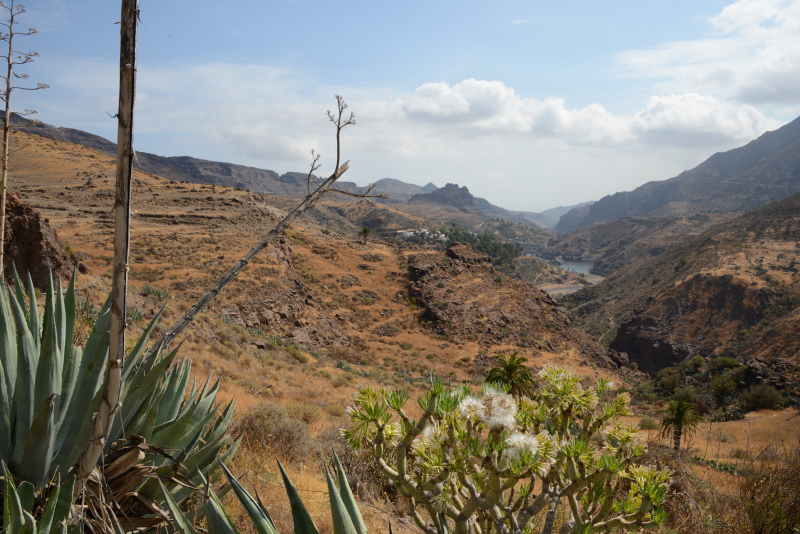 Wir wandern heute ab Haustür los. Zunächst Richung Santa Lucia, womit auch die Überlegung zum Abendessen dorthin zu laufen definitiv ad acta gelegt ist. Viel zu steil und schweißtreibend. Vom Ort geht es leicht bergab über ein weites Feld zur Fortaleza. Das sind Felsfestungen mit einigen archäologischen Funden. Sie dienten als Zufluchtsorte für die Ureinwohner 1483. Nach dem Aussichtspunkt zum Sorrueda-Stausee, der nur ganz wenig Wasser hat, trinken wir in einer sehr hübschen Bar Kaffee und O-Saft. Nun geht es immer bergauf entlang der Hangkante der Schlucht. Kakteen, Agaven und vieles andere wächst in dieser Steinwüste. Die Ausblicke in die Schlucht sind toll. Nach knapp vier Stunden sind wir wieder zuhause. Eine schöne 11km Wanderung. Karte