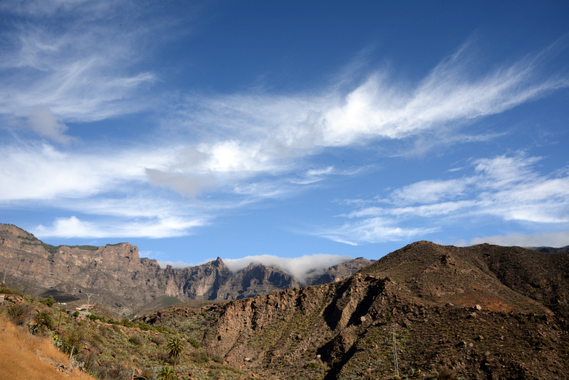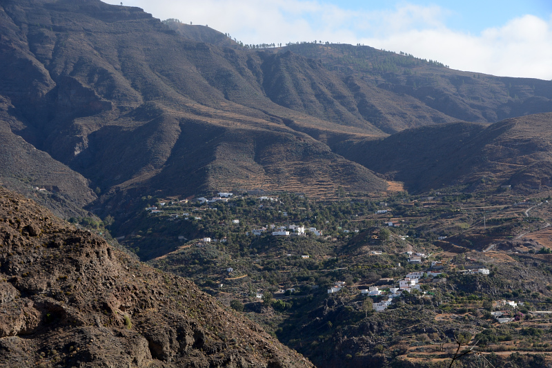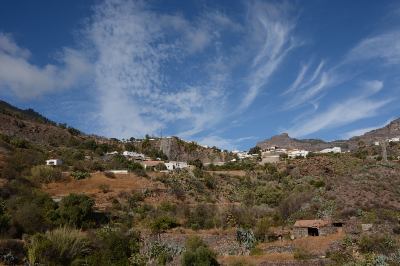Also starten wir den Abstieg nach St.Lucia. Das Wetter ist wieder grandios. Sonne, blauer Himmel und Schleierwolken. Einige hübsche Häuser am Hang. Echt klasse. Nach einer Stunde und 4,4km sind wir wieder zurück und gönnen uns einen Café in der Bar neben dem Supermarkt. Im Schatten ist es durchaus kalt. In einer Panaderia holen wir uns noch ein paar Kaffeestückchen und fahren ins Haus zurück. Waschmaschine anschmeissen. In der Sonne ist es heiß, aber nach dem eiskalten Pool ist uns immer noch nicht zumute. Nur bis zu den Knien.