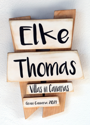 Willkommenschild aus Holz mit unseren Namen drauf gemacht. Wow!