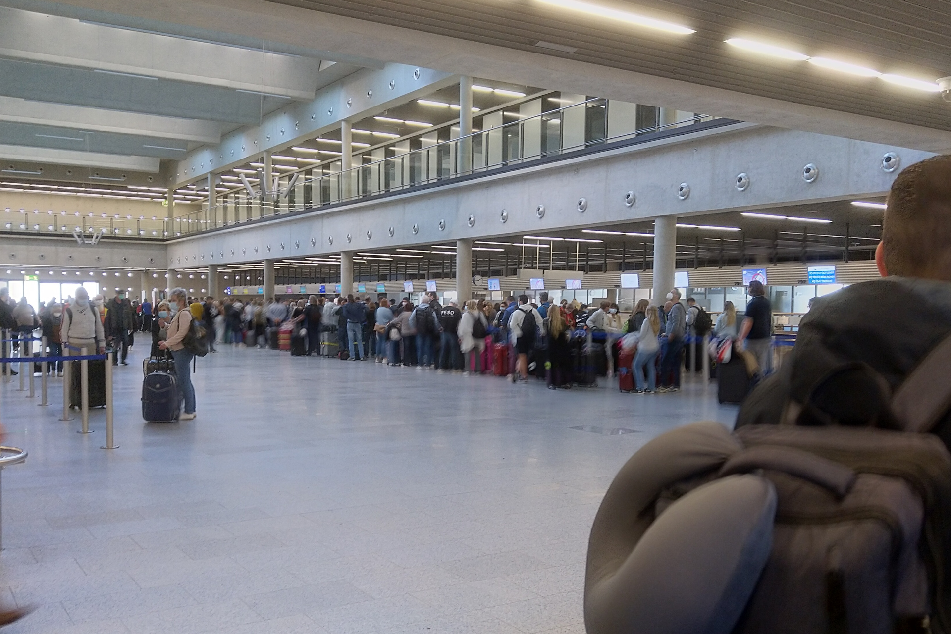 Mainz den 31.10.2021 - es ist neblig und 8°. 8:32 steigen wir in die S-Bahn. Condor ist noch nicht richtig im Regelbetrieb und erfreut uns mit einer 100m langen Warteschlange. Man sollte 2 Sunden vorher da sein schrieb CONDOR. Ach ja - Sommer- Winterzeitumstellung. Da ist die eine oder andere SMS von Condor schon mal durcheinander. Nur wenige Schalter sind offen und werden der Heerschar von Urlaubern nicht Herr. Wir stehen tatsächlich 1 Stunde bis wir drankommen. Immer wieder werden Passagiere vorgezogen, weil deren Flieger wartet. Das hätten die während Corona ja mal üben können.
