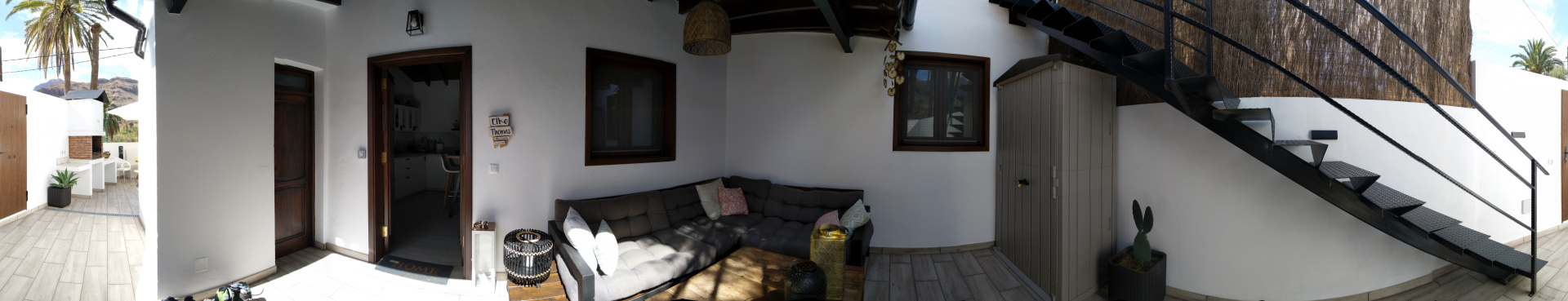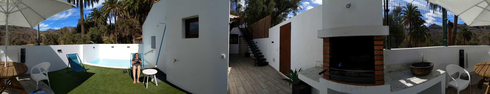 Nach dem Einkauf schreiben wir Sabel, unserer Vermieterin, dass wir unterwegs zum Häuschen sind. Die Strasse in die Berge ist extrem schmal und kurvig und die tiefstehende Sonne stört gewaltig. Am Ende einer engen Sackgasse erwarten uns Sabel und José. Sie zeigen uns das knuffige Häuschen und schwups sind wir alleine mitten in den Bergen. Einfach klasse.