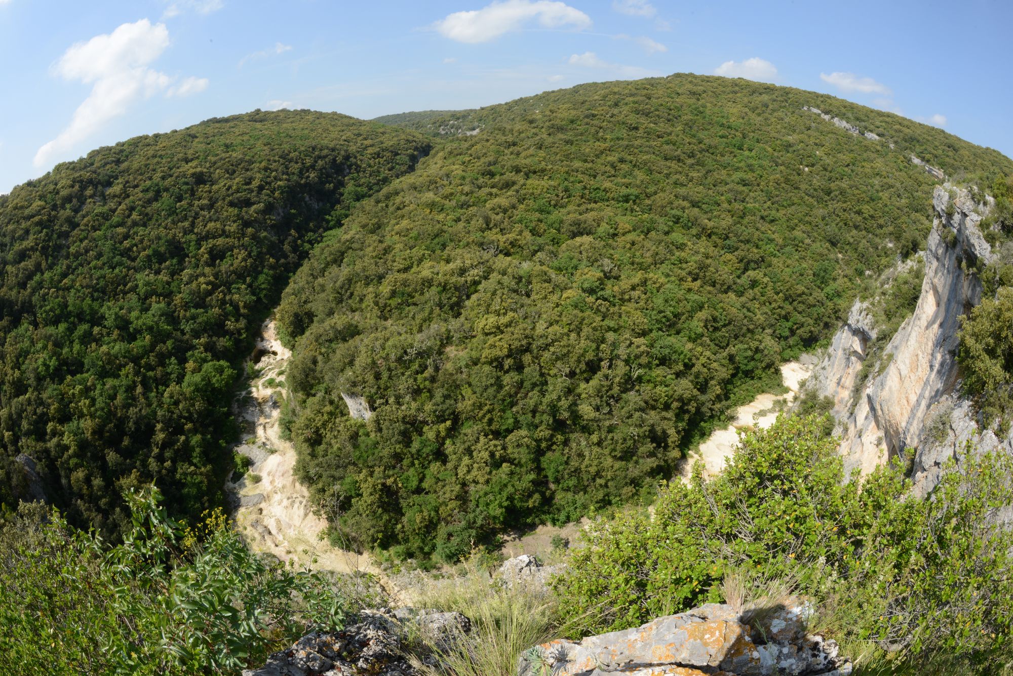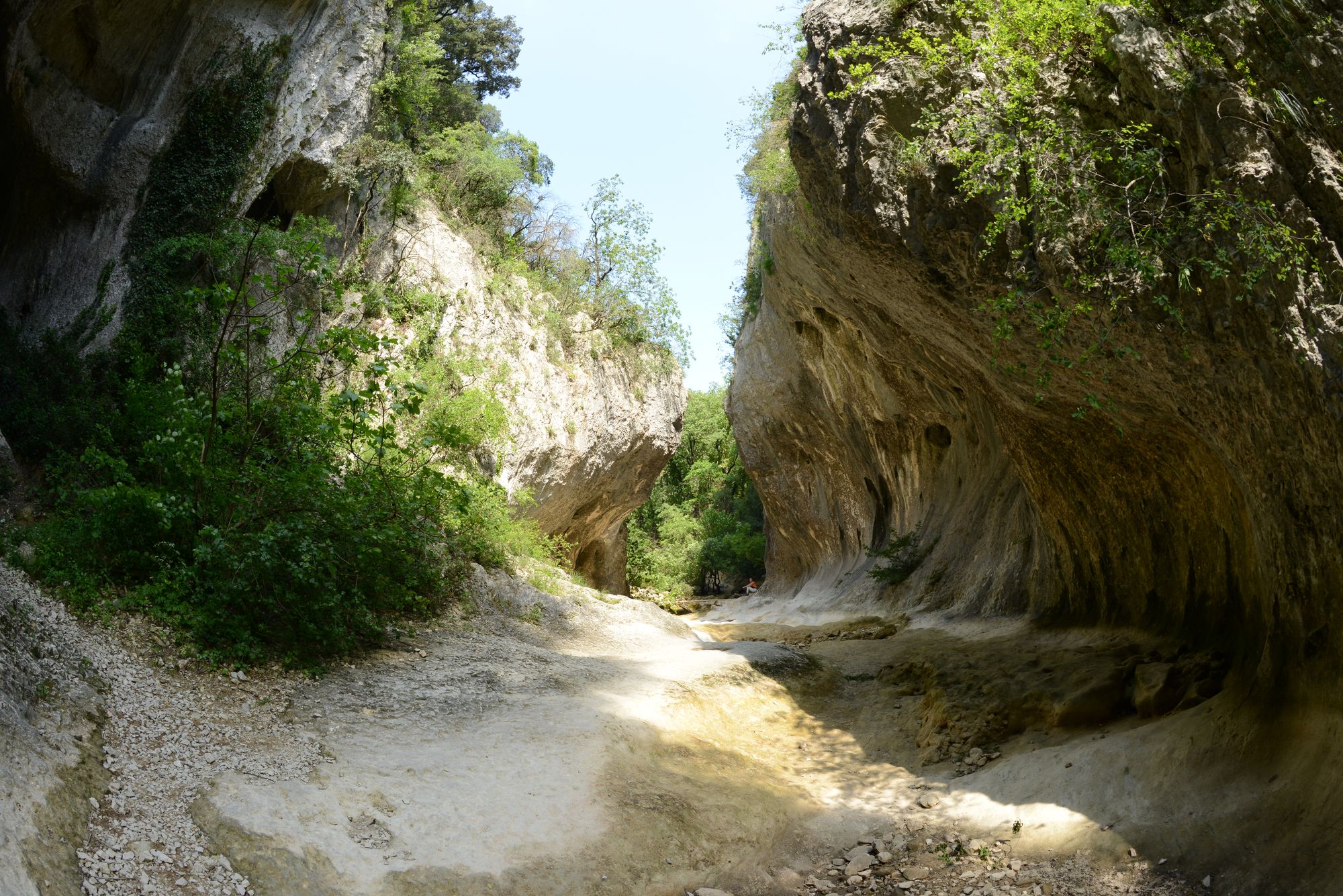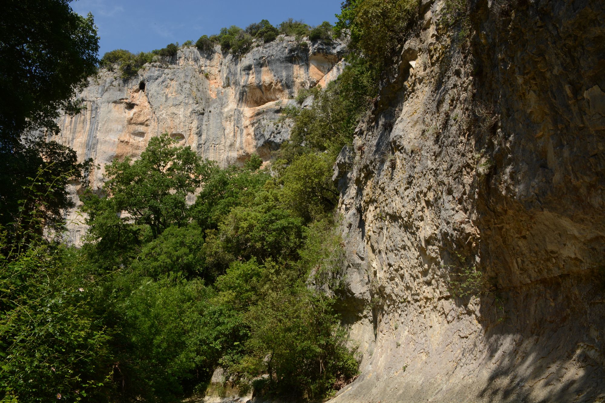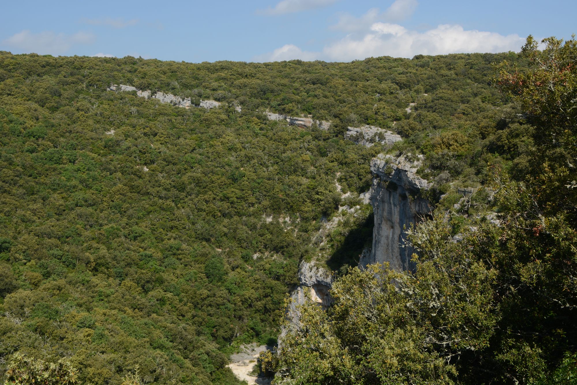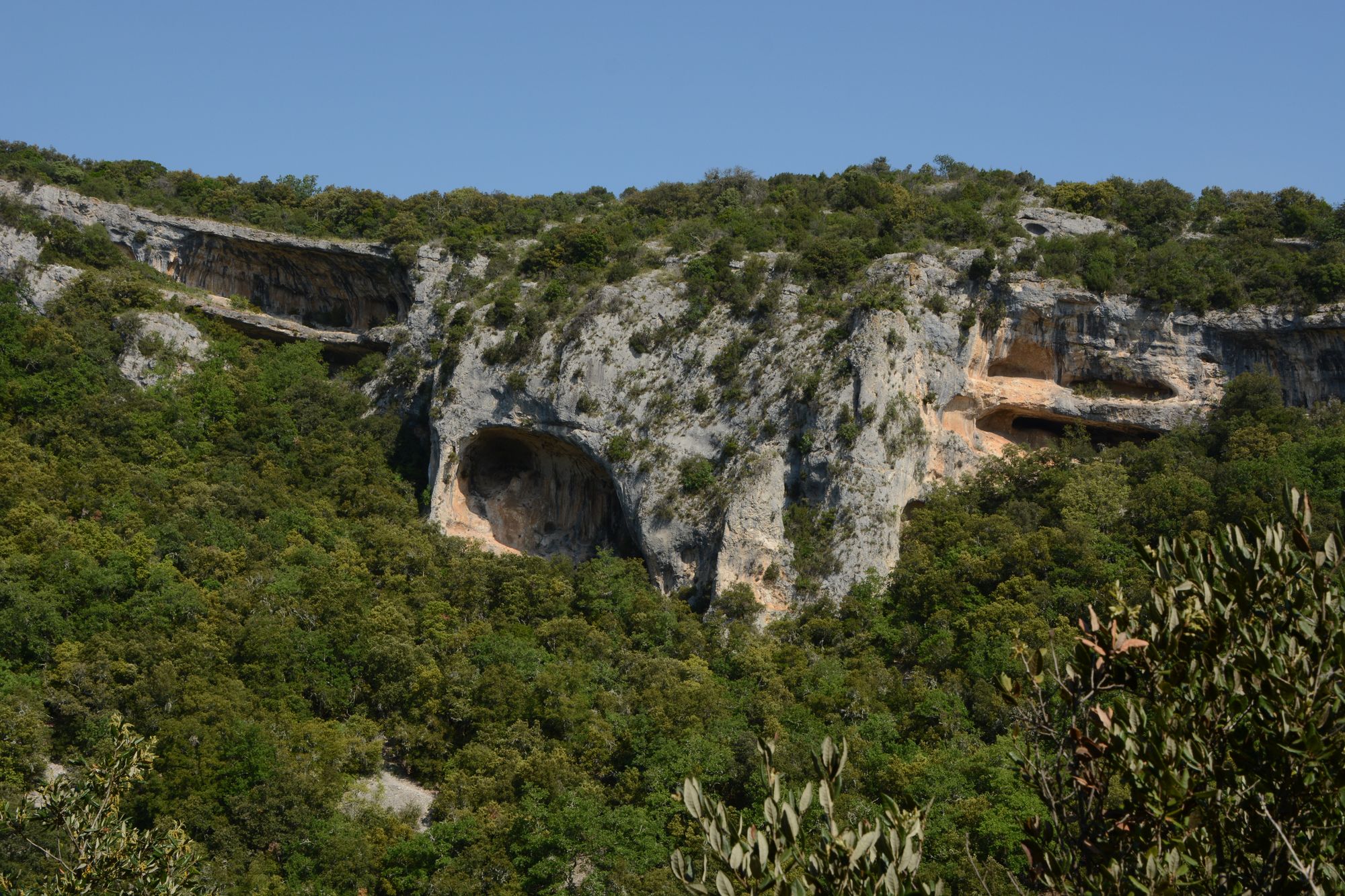 Wir fahren nach dem Frühstück zu "Les Concluses" de Lussan, etwa 25km entfernt. Erst geht es über eine Hochebene und dann immer weiter in den niedrigen Wald hinein. Als wir denken, dass wir nie irgendwo ankommen, stehen wir auf dem Wanderparkplatz, der auch schon gut besucht ist. Es sind nur 1,2km in die Schlucht hinein, die müßen wir aber auch wieder zurück immer den Berg hoch.... Auf der anderen Seite der Schlucht sieht man tief ausgehöhlte Felswände. Tief unten zeugen die abgeschliffenen Felswände davon, dass hier viele Jahre große Wassermassen gewirkt haben, nun gibt es hie und da eine abgestandene Wasserpfütze. Normalerweise liegt die Schlucht nur im Sommer trocken.