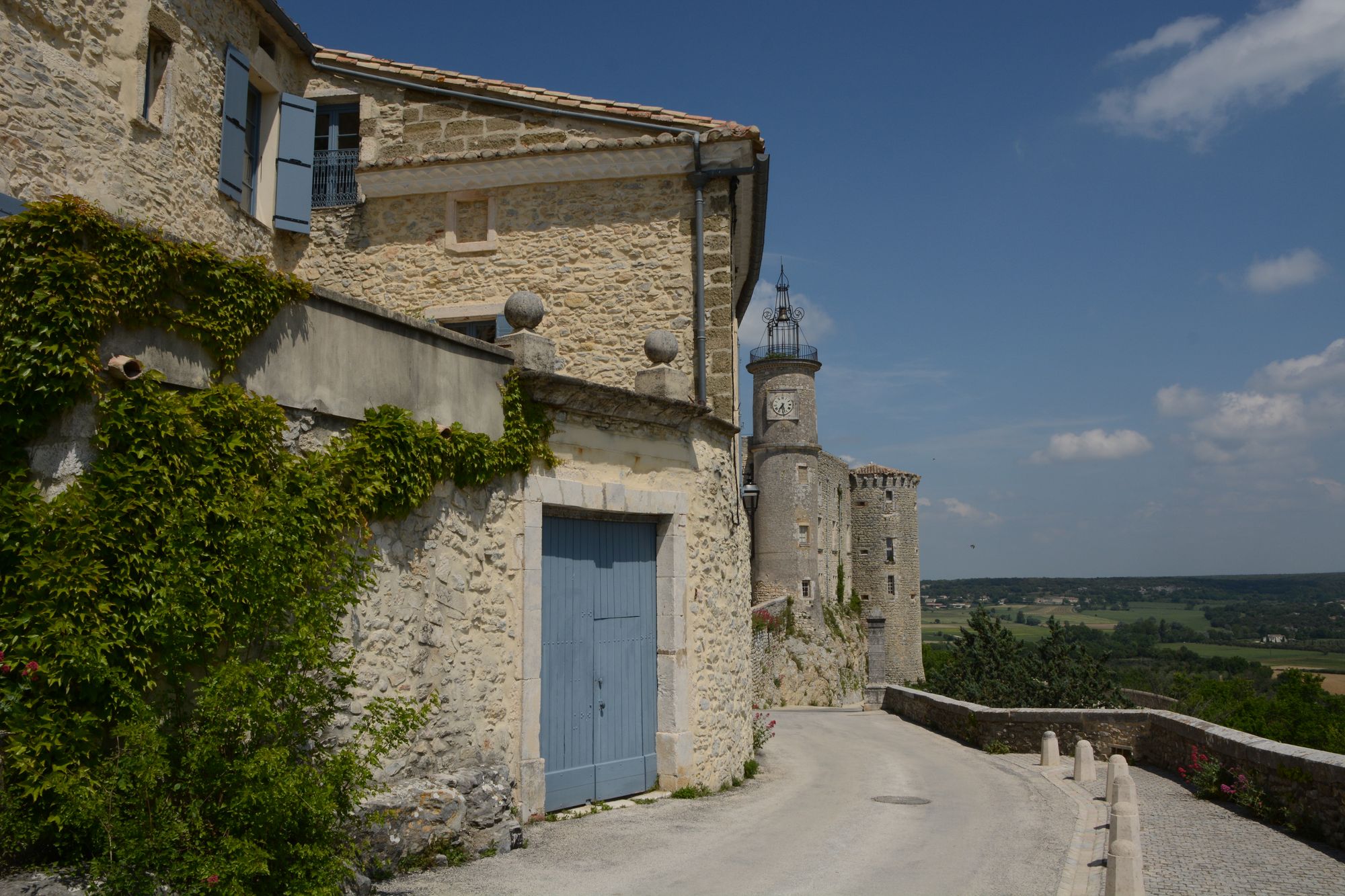 Wir fahren zurück und zweigen ab nach Lussan, auch eines der "Plus beaux villages de France". Es liegt erhöht und ist von einer Stadtmauer umgeben, auf der man das Dorf komplett umrunden kann. Von dort hat man einen herrlichen Ausblick in die Ebene und auf die Ausläufer der Cévennen. Im Dorf gönnen wir uns den obligatorischen Café im Bistro und schauen uns die Gassen und tollen Häuser an.